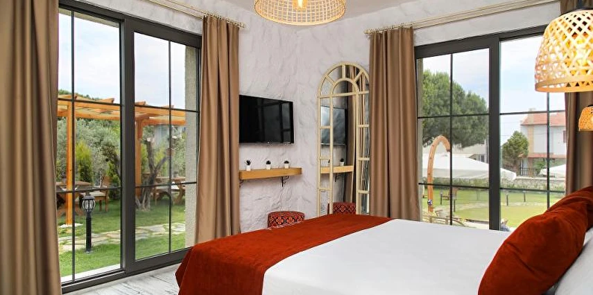 İzmir’in sevimli tatil beldesi Urla’da bulunan Huzurla Otel, yemyeşil bahçesi ve deniz manzaralı terası ile misafirlerini ağırlıyor. Deniz ve bahçe manzaralı odalarında konforlu bir tatil imkanı sunan otel, iskele sahiline ve restoranlara 350 metre, Urla Otogarı’na ise 5 km mesafe bulunuyor. Otelimizde 0-6 yaş anne baba yanında ücretsiz ( ek yataksız ) konaklamaktadır. Dileyen misafirlerimize ek yatak ücretli yansıtılmaktadır. Park yatak hizmeti bulunmamaktadır.