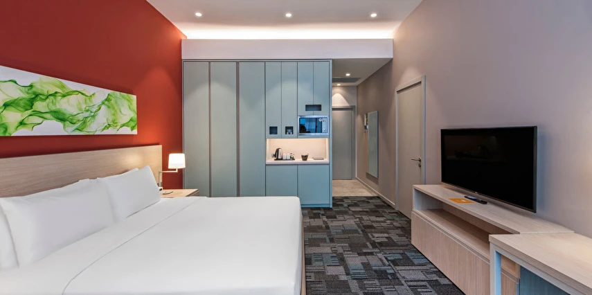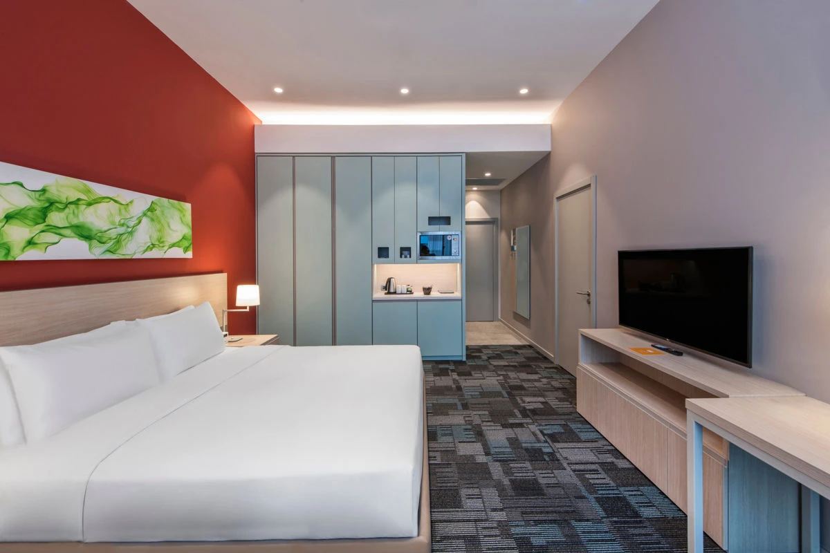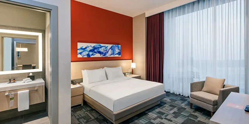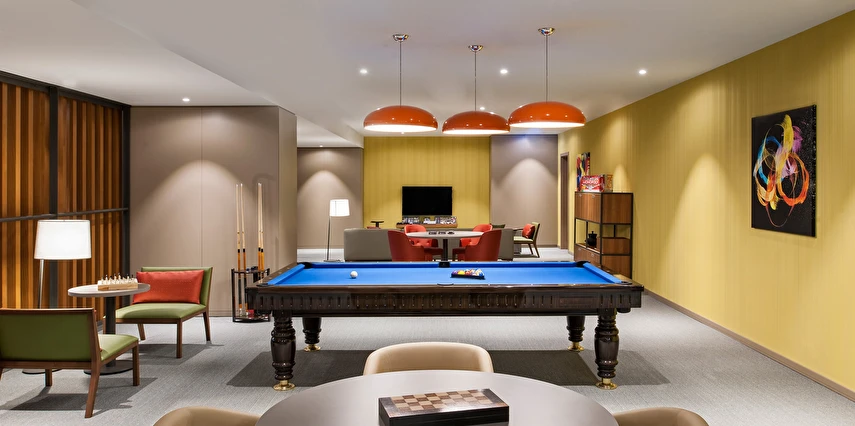 Daha Fazla GösterHyatt House Gebze'de konuklar, tam donanımlı mutfaklar da dahil olmak üzere, oyun odası, fitness center, sauna ve havuz gibi tüm ihtiyaçlarını karşılayabilecekleri ve boş vakitlerinde de zaman geçirebilecekleri yaşam alanlarından yararlanabilirler. H BAR, misafirlerin akşamları dinlenebileceği özel ve dinlendirici bir alan sağlarken, H Market konukların günlük gereksinimlerini karşılamak üzere atıştırmalıklar ve taze hazırlanmış salatalar ve sandviçler sunmaktadır. Ayrıca jeton sistemi ile çalışan çamaşır odasında da, misafirlerin 7/24 yararlanabilecekleri çamaşır makinaları sunulmaktadır. Concierge, bell boy ve room servisi limitlidir.
