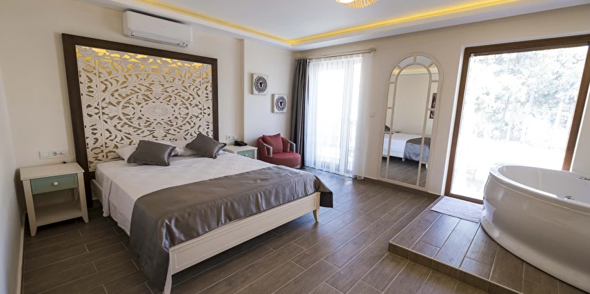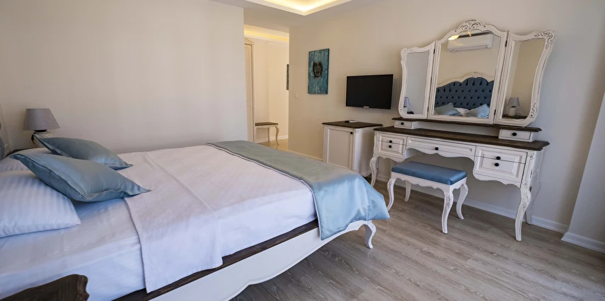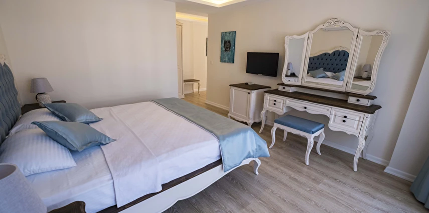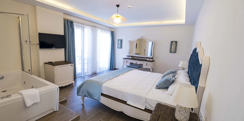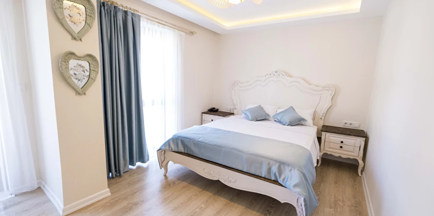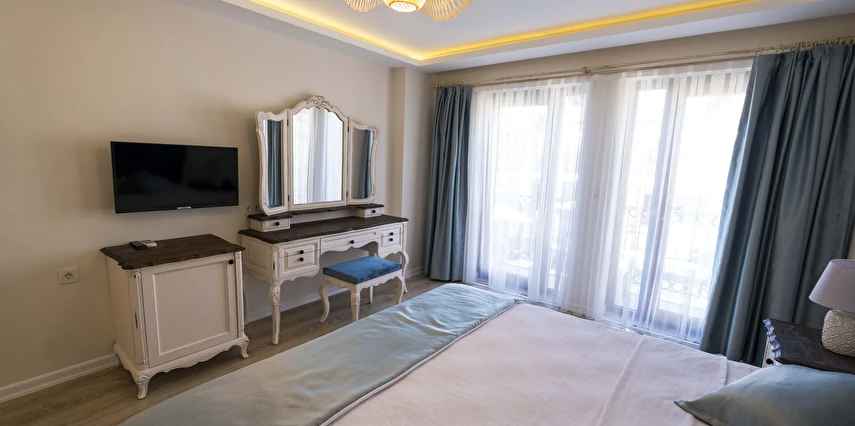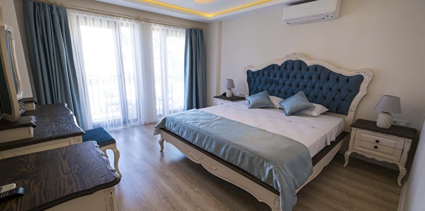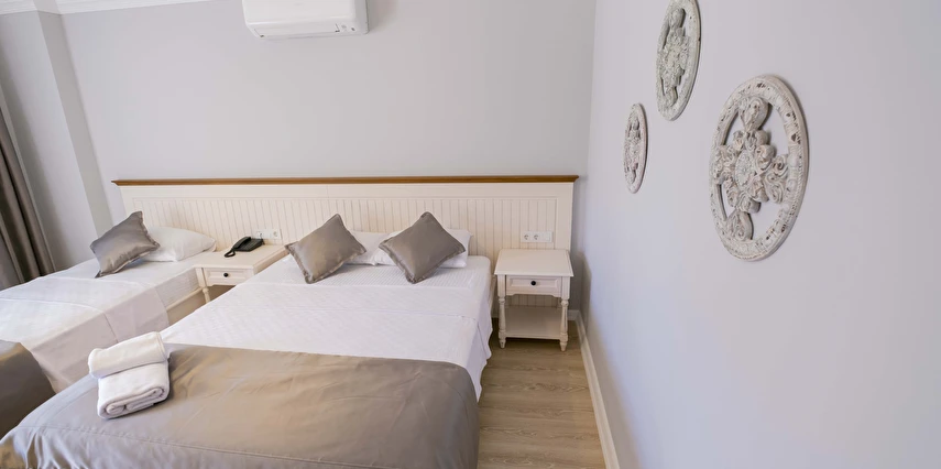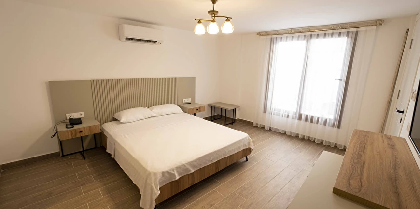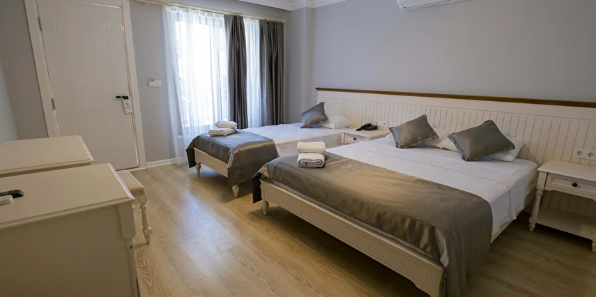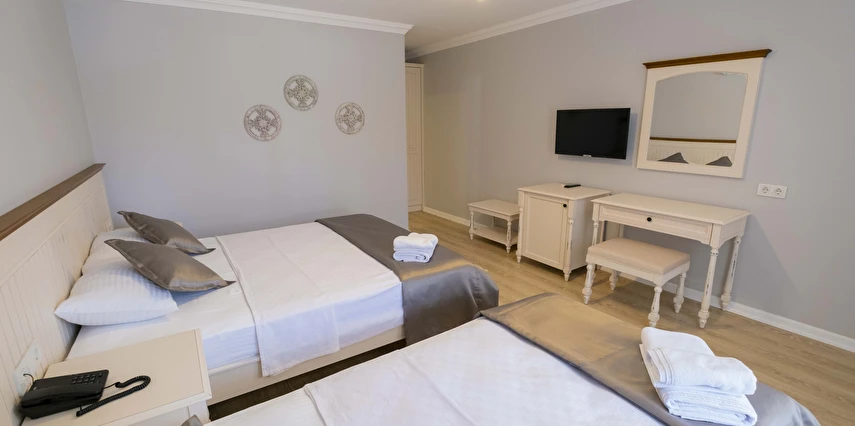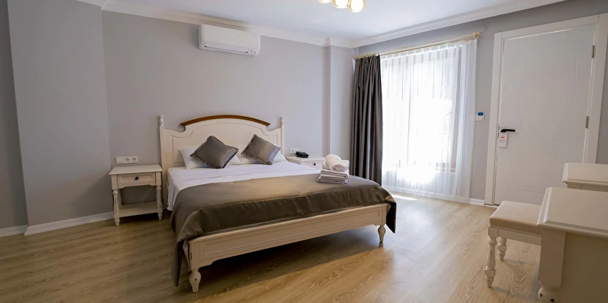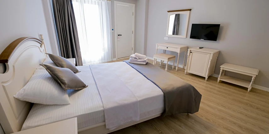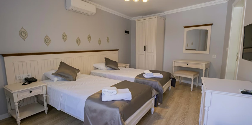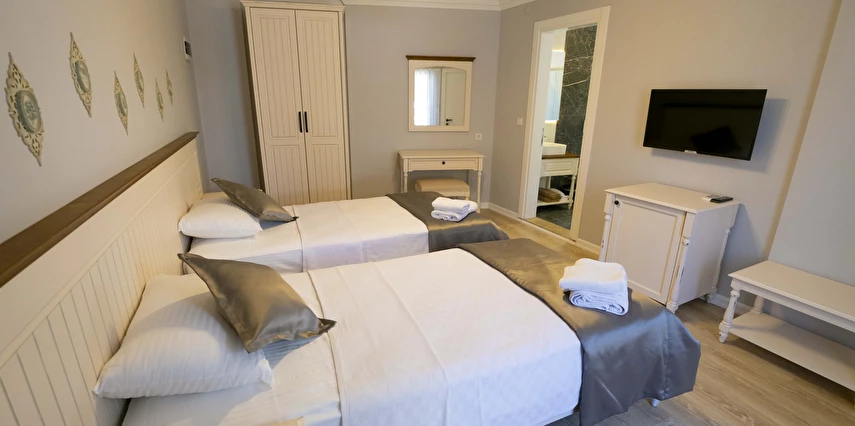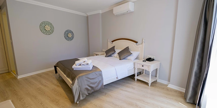 Odalarımızda, gardırop, ısıtma, klima, ses yalıtımı, sivri sinek teli, makyaj masası, telefon, uydu kanalları, Wi-Fi, banyo, bornoz, terlik, havlu seti bulunmaktadır.