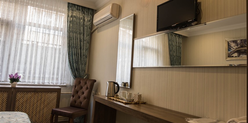 - Oda donanımı: Klima, LCD TV, uydu kanalları, ücretsiz Wi-Fi, minibar, kettle, saç kurutma makinesi, banyo malzemeleri ve günlük temizlik hizmeti.