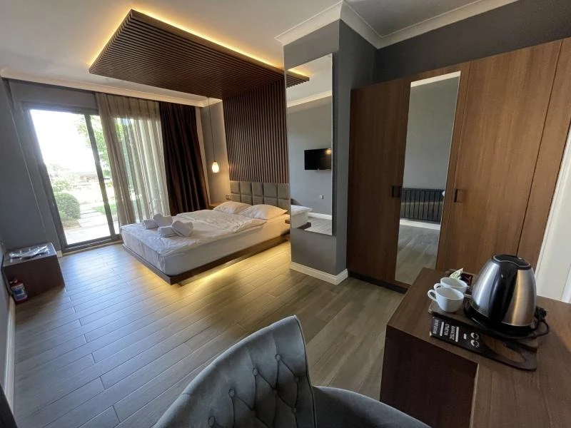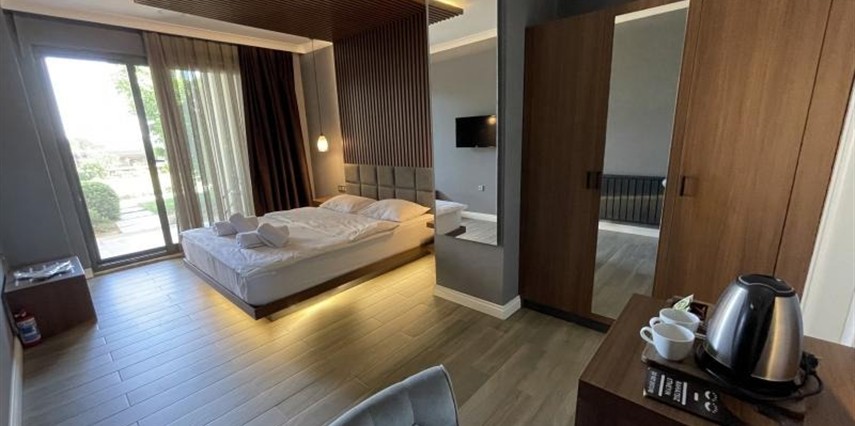 Toplam 11 odası bulunan otelimizde bazı odalarımız deniz, bazı odalarımız ise Kazdağları manzaralıdır. Çam ve zeytin ağaçlarının kuşattığı, yeşil ve mavinin bin bir tonunu görebileceğiniz odalarımız sizin konforunuz düşünülerek dizayn edilmiştir.
