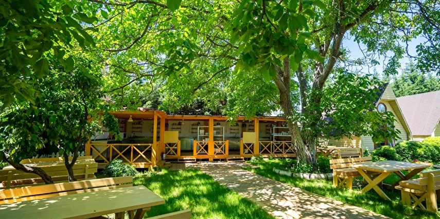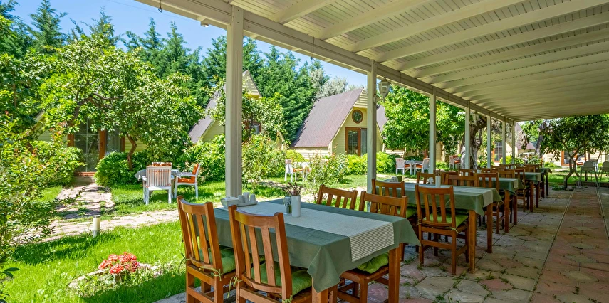 Tesiste konaklayan misafirler güne, tesisin manzaralı restoranında servis edilen lezzetli bir serpme köy kahvaltısı ile başlayabiliyor. Tesiste çocuklar için oyun alanı da var. Edremit Güre’de yeşil bir ortamda hizmet veren İdavilla Bungalov Bahçe, bungalovları, havalimanı servisi, çocuklar için oyun parkı gibi olanaklar sunuyor.