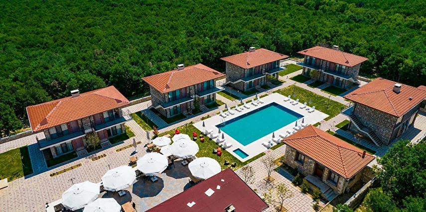 Daha Fazla GösterMasmavi denizin, yeşilin en güzel tonu meşe ağaçları ile denizi kıskandıran bir gökyüzü altında buluştuğu İğneada Hotel Rezve, hem deniz tatili arayanlara hem de doğa ile iç içe olmaktan vazgeçemeyenlere eşsiz bir tatil fırsatı sunuyor. Bir tarafımızda masmavi deniz , Istranca'ların meşhur ormanları, bir tarafımızda ise Bulgaristan ile sınırımızı oluşturan Rezve deresi ve üzerinizde mavinin bütün tonlarının bulunduğu tertemiz bir gökyüzü… Meşe ağaçları arasında , özgün mimariye sadık kalınarak Trakya taşlarından yapılmış iki katlı taş evlerden oluşan bir mahalle… İğneadaPlajı ve Beğendik kumsalları yanı başımızda. İsterseniz Longoz Ormanları'nda kuş gözlem kulesini ziyaret edebilirsiniz. İsterseniz de kendinizi Trakya'nın turizme açık tek mağarası olan Dupnisa Mağarası'nı ziyaret edebilirsiniz.