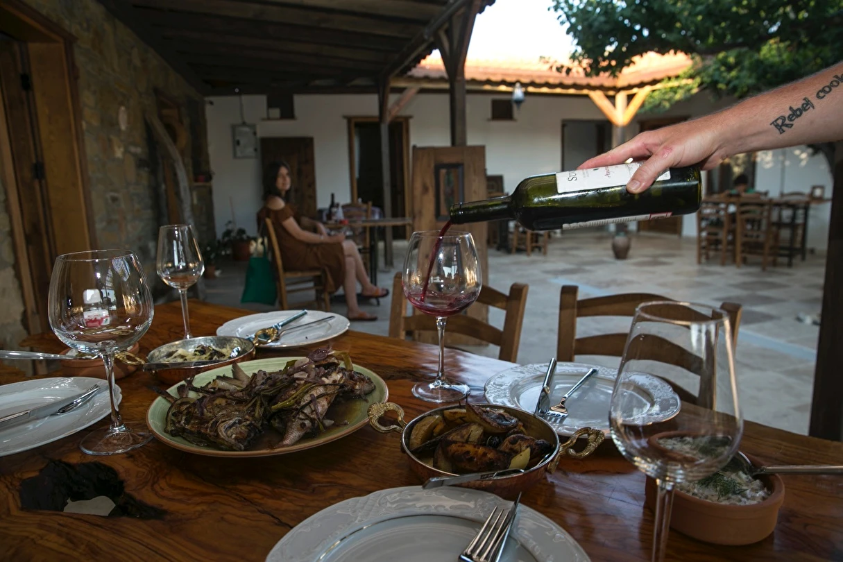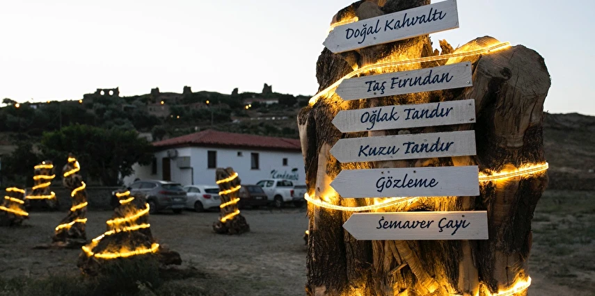 Konuk ağırlamaktan mutluluk duyan bizler insanın kırk yıl öncesinden hatırladığı misafirperver bir ortam sunuyoruz. Kahvaltı masalarımız sohbetlerimizle şenleniyor. Zeytinyağı bahçeden, otlar dağdan, tereyağı mandıradan, sebzeler bostandan…