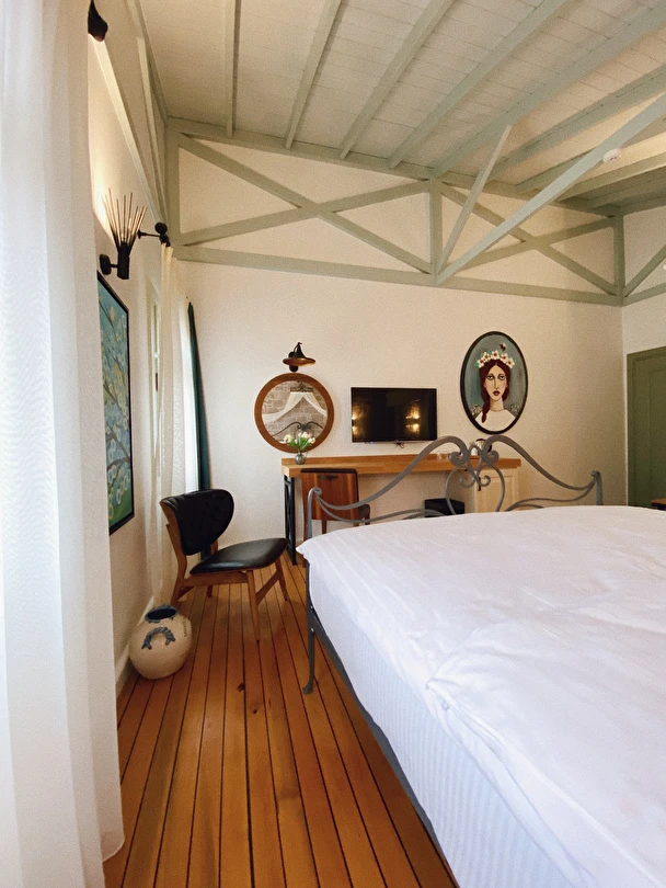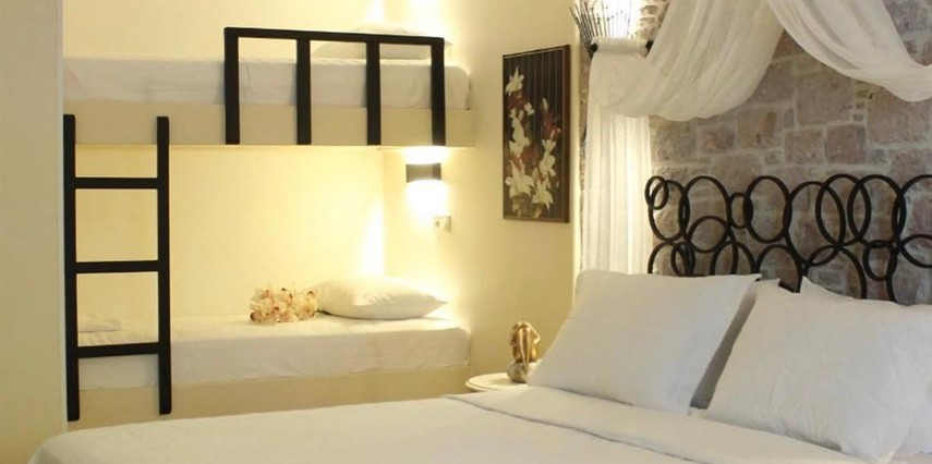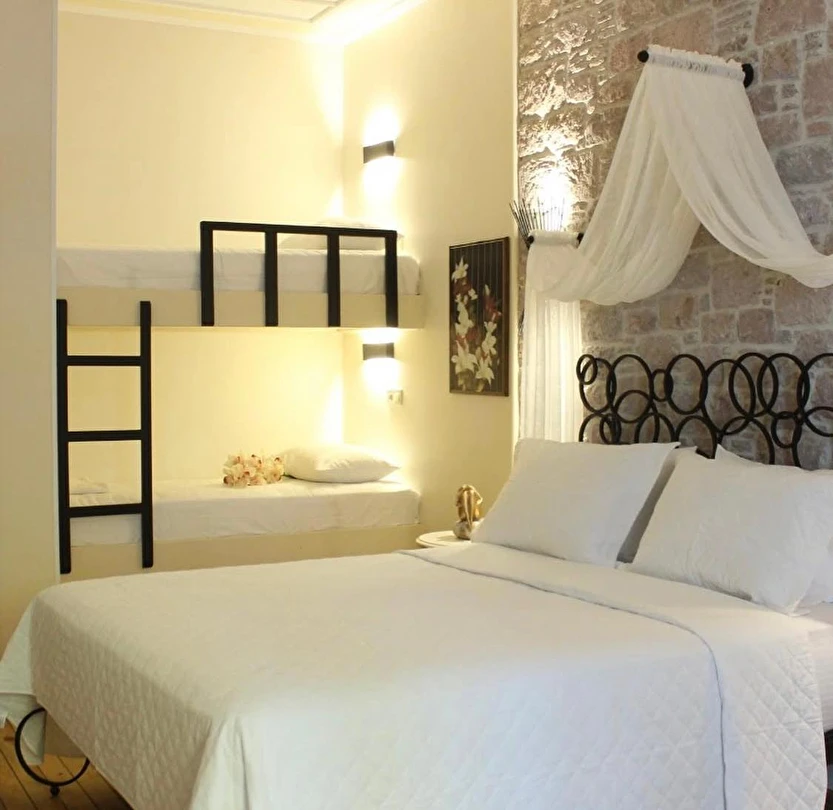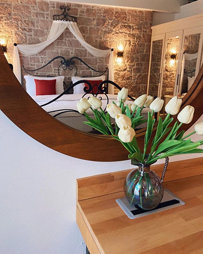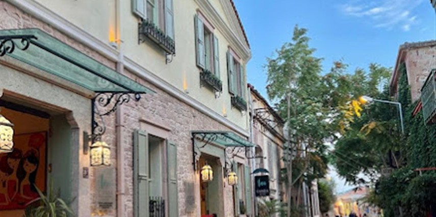 Otelimiz eski bir zeytinyağı fabrikasının baştan sona restore görmesiyle oluşmuş 11 odalı bir butik oteldir. Cunda Adası'nın tam merkezinde bulunmakta olup Ayvalık merkeze 8, Sarımsaklı merkeze ise 12 km uzaklıktadır. Otelimizin konumu gereği 200 m yakınında bulunan sahilden direk olarak denize girme gibi bir şansımız maalesef bulunmamaktadır. Ancak; Cunda Adası'nda 3, Sarımsaklı sahilinde 1 adet olmak üzere toplam 4 adet anlaşmalı plajımız bulunmaktadır. Plaj rezervasyonlarıyla ve giriş ücretleriyle ilgili detaylı bilgi için lütfen otelimiz ile iletişim sağlayınız