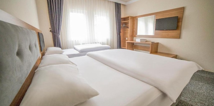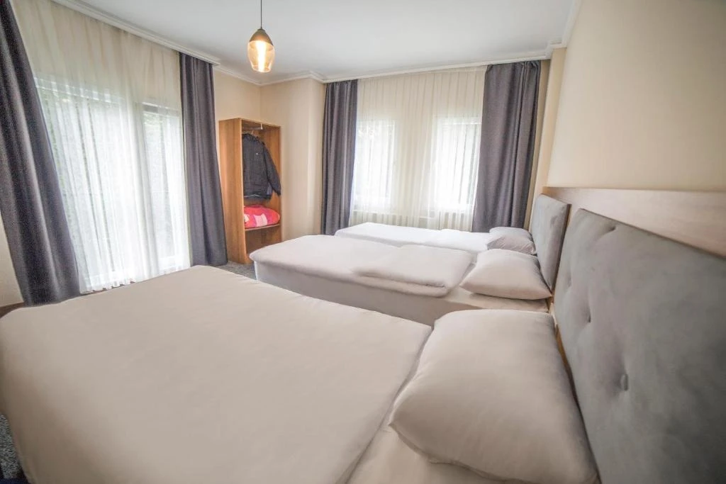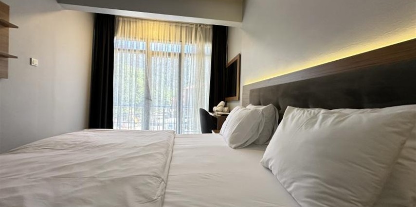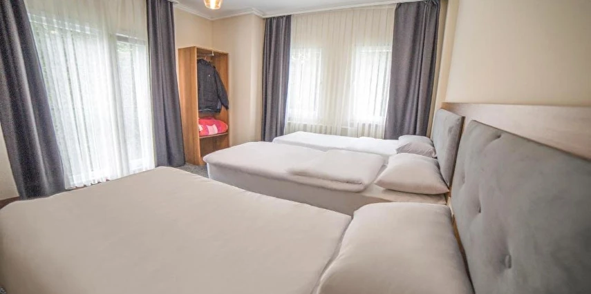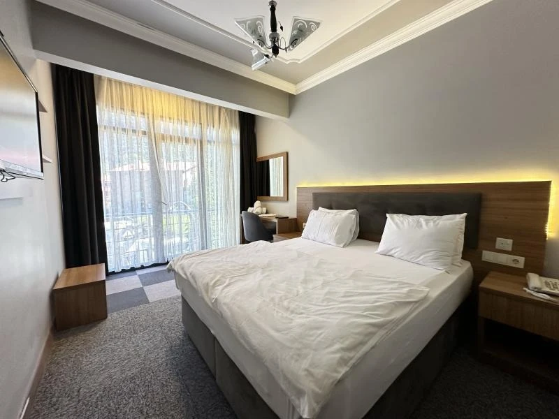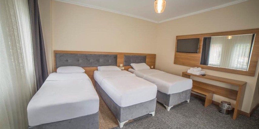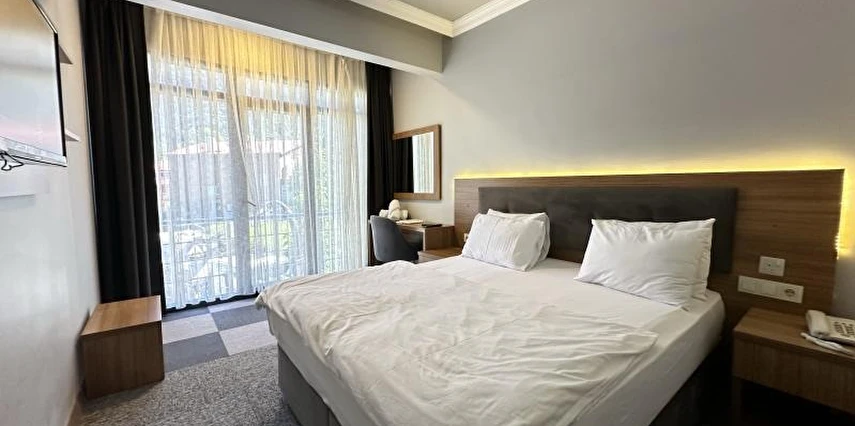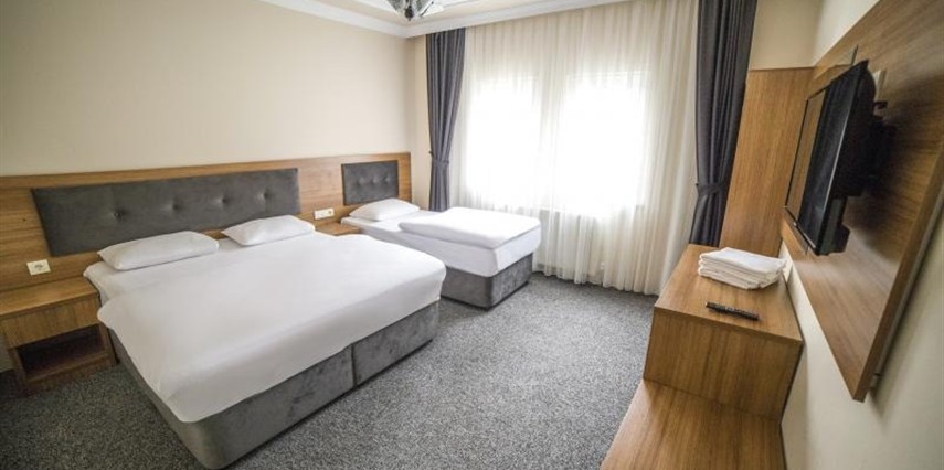 Otelimizde yer alan tüm odalar halı kaplı zemine sahip olup; LED uydu TV, oturma alanı ve gardırop ile konforlu şekilde donatılmıştır. Her odada tuvalet, duş, saç kurutma makinesi ve ücretsiz banyo malzemeleri bulunan özel banyo mevcuttur. Misafirlerimizin konforu için tesisimizde 24 saat sıcak su hizmeti sunulmaktadır.