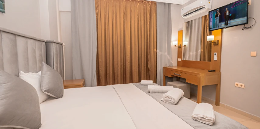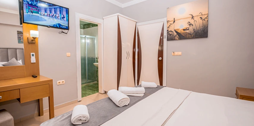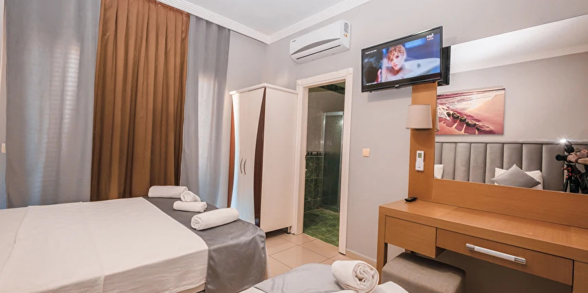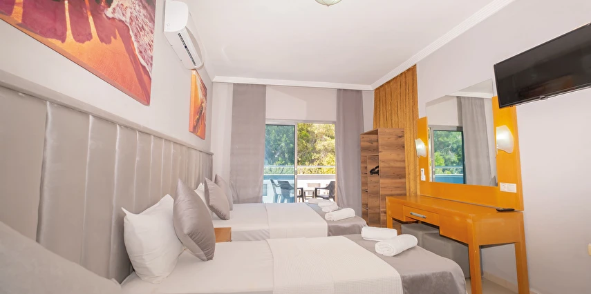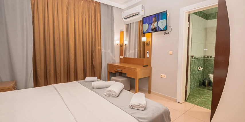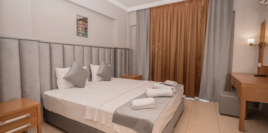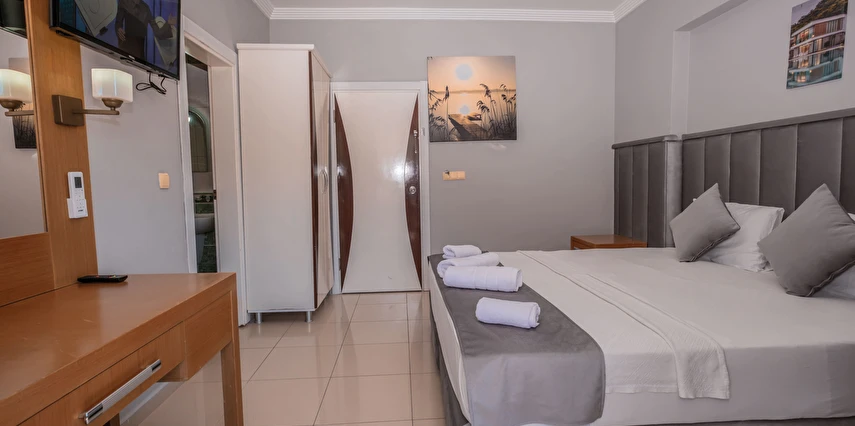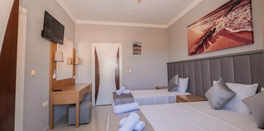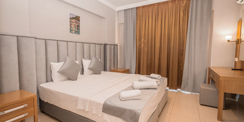 Modern ve sade bir anlayışla dekore edilmiş odalar, misafirlerin konforu düşünülerek tasarlanmıştır. Odalarda klima, televizyon, minibar, ücretsiz Wi-Fi ve özel banyo gibi temel ihtiyaçlar yer almakta; bazı odalar balkonlu yapısıyla Kemer’in keyifli havasını yaşama imkânı sunmaktadır. Farklı kişi kapasitelerine uygun oda seçenekleri sayesinde çiftler, arkadaş grupları ve aileler için uygundur.