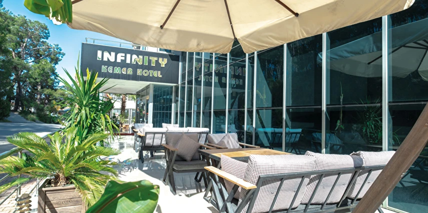 Infinity Hotel Kemer, Antalya’nın en sevilen tatil beldelerinden biri olan Kemer’de, merkezi konumu ve samimi atmosferiyle misafirlerini ağırlayan konforlu bir tatil otelidir. Şehir merkezine yakın konumda yer alan tesis; alışveriş noktalarına, restoranlara, kafelere ve eğlence alanlarına kolay ulaşım imkânı sunmasıyla özellikle şehir–deniz tatilini bir arada yaşamak isteyen misafirler için ideal bir seçenektir.