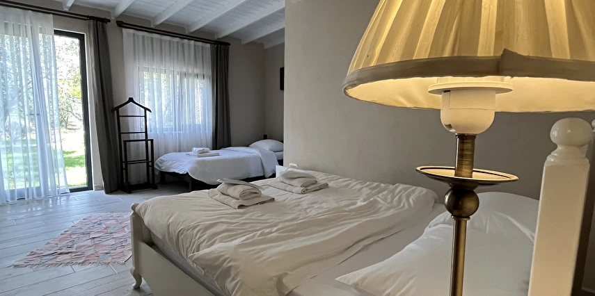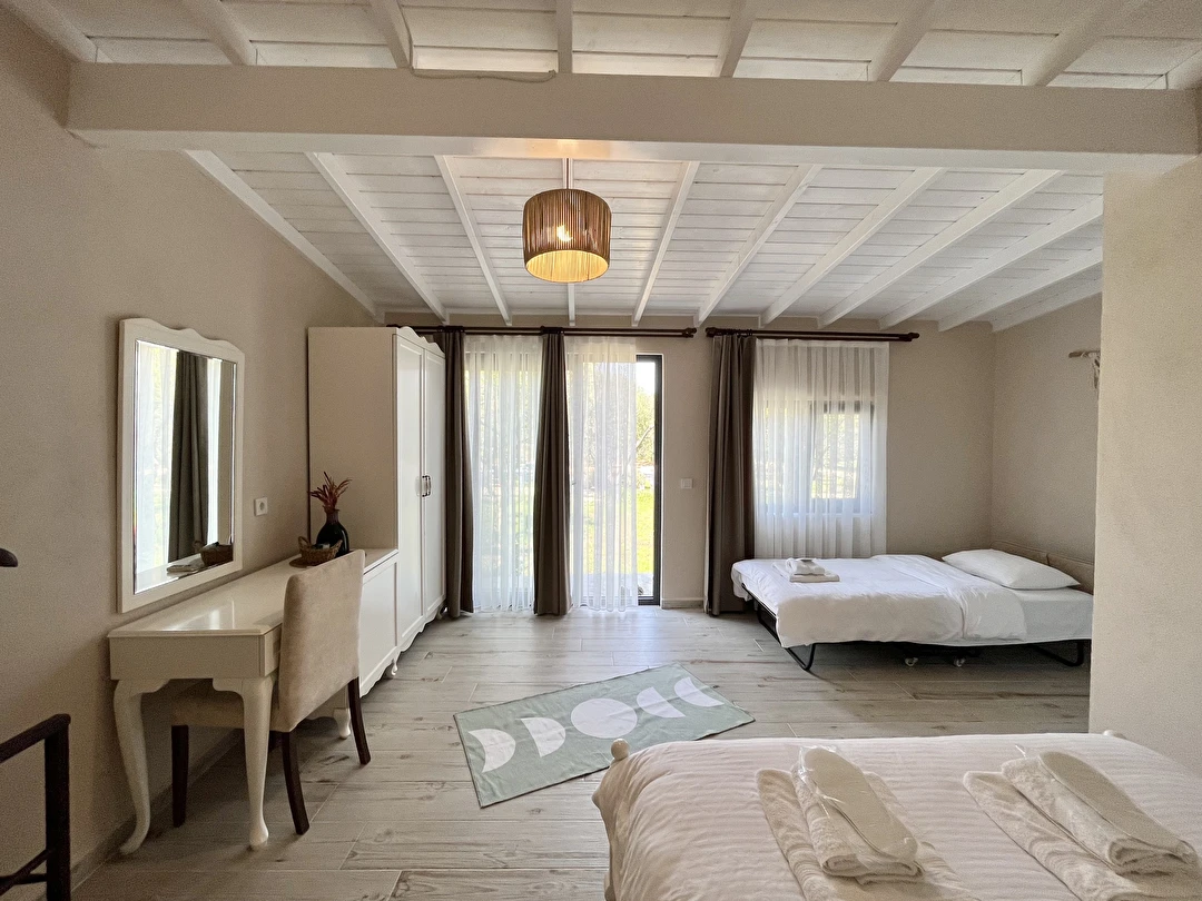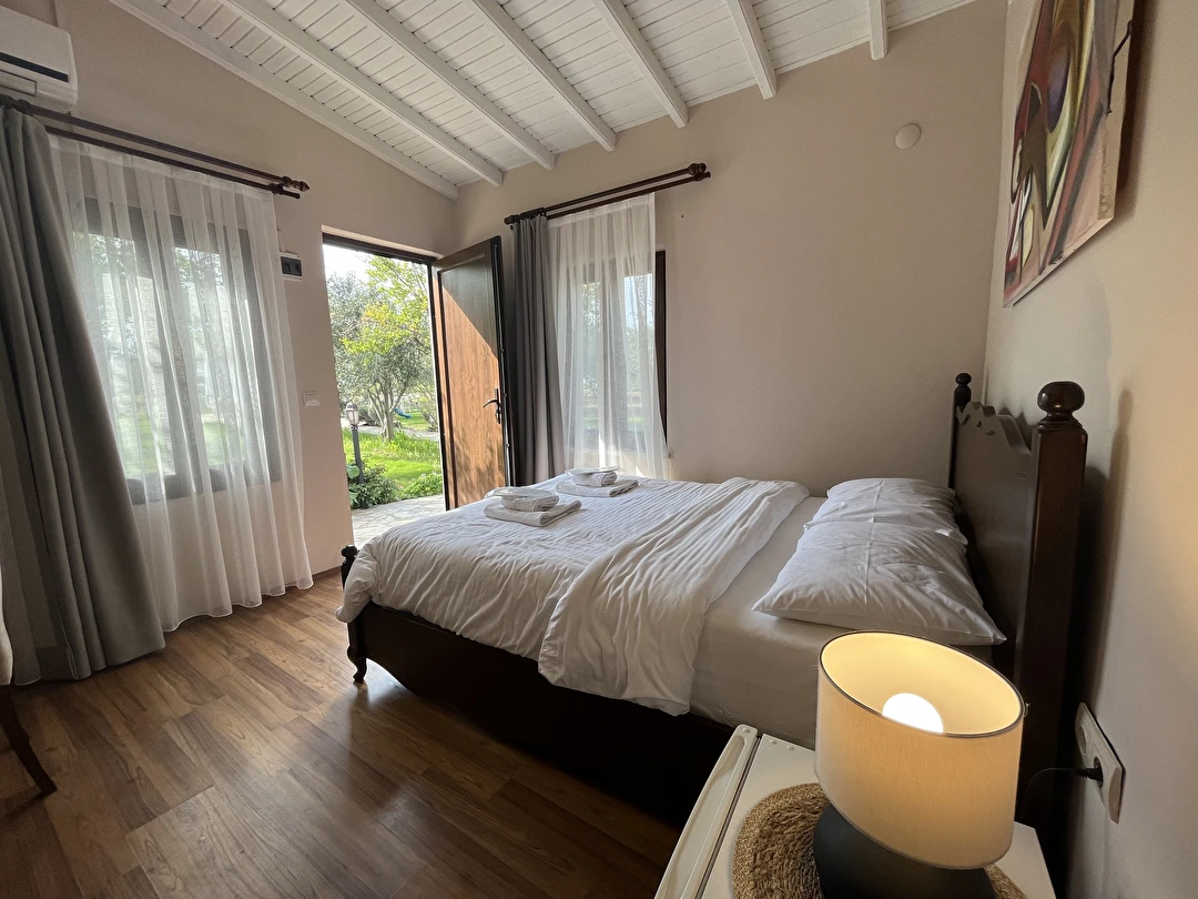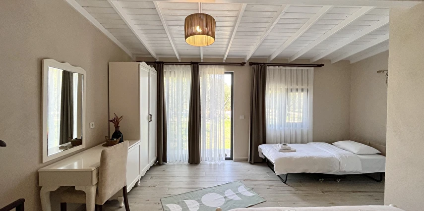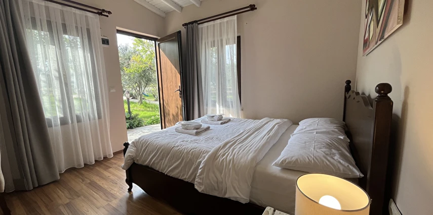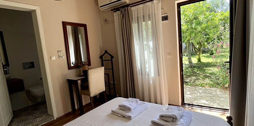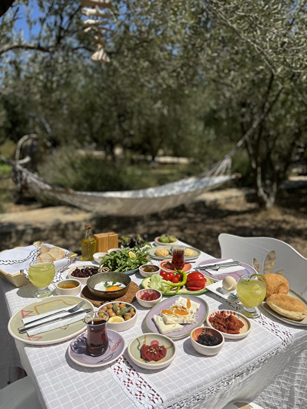 Daha Fazla GösterIrmak Bağ Evi, Mis kokulu zeytin ağaçları, üzüm bağları ve çiçeklerle çevrili doğası ile huzurlu ve konforlu bir tatil vadediyor. Tesis misafirleri güne ev yapımı reçellerin yanı sıra, bahçesinde yetiştirilen organik sebze ve meyveler eşliğinde nefis bir kahvaltı ile başlıyor. Tesis, Ev sıcaklığındaki odaları ve güler yüzlü personeliyle, misafirlerine şehrin karmaşık yaşamından uzak sakin bir tatil atmosferi sağlıyor. Tesis odalarına 12.00-22.00 saatleri arasında giriş yapılabiliyor. Doğa ile iç içe bir konumda misafirlerini ağırlayan tesis, Ev konforu sunan odalarda keyifli bir tatil vadediyor.