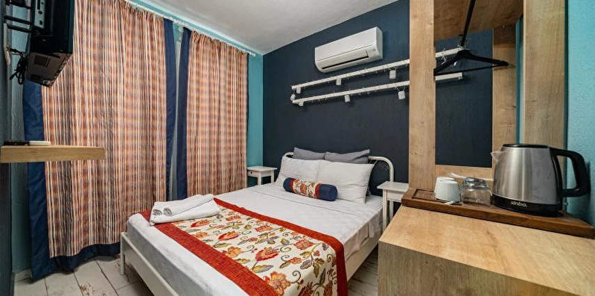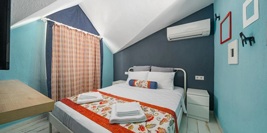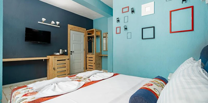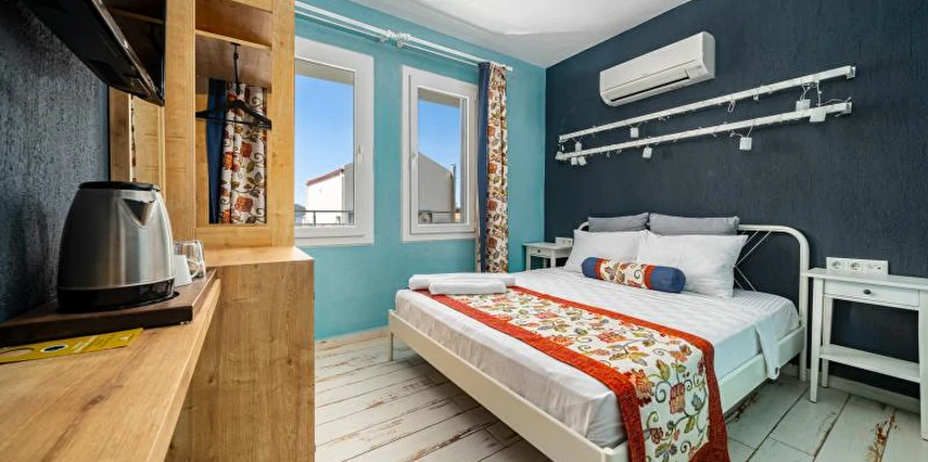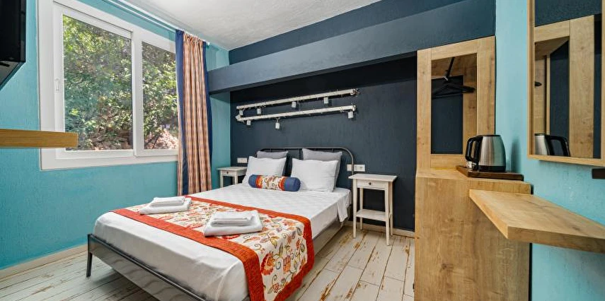Konforlu ve kullanışlı odaları, misafirlerin ihtiyaçları göz önünde bulundurularak özenle düzenlenmiştir. Odalarda bulunan klima, ücretsiz Wi-Fi ve temel donanımlar sayesinde konaklamanız boyunca rahat bir deneyim yaşayabilirsiniz. Bazı odalarda balkon bulunmakta olup, Kaş’ın temiz havasının keyfini çıkarma imkânı sunar.