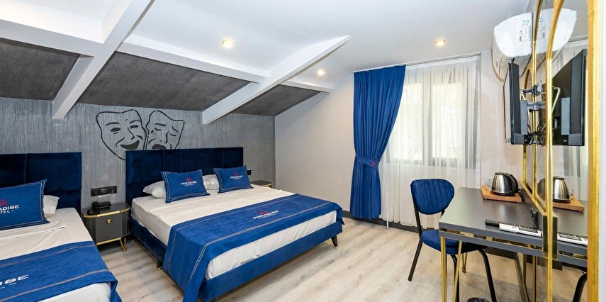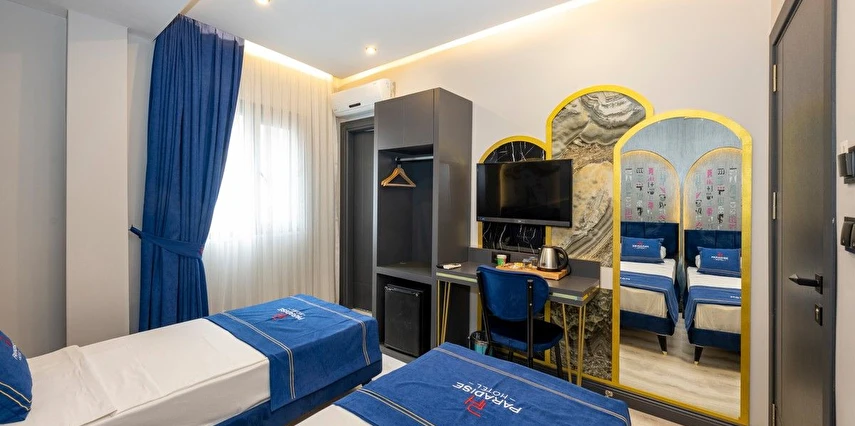 Bazı odalarda düz ekran uydu TV, minibar, elektrikli su ısıtıcısı ve kasa vardır. Tesisin resepsiyonu 24 saat açıktır. Otelde araba kiralama hizmeti de verilmektedir. Tesis genelinde ücretsiz Wi-Fi erişimi mevcuttur. İstanbul Paradise Hotel'de parke zeminli odalarında klima, ısıtma sistemi ve ücretsiz banyo malzemeleri mevcuttur.