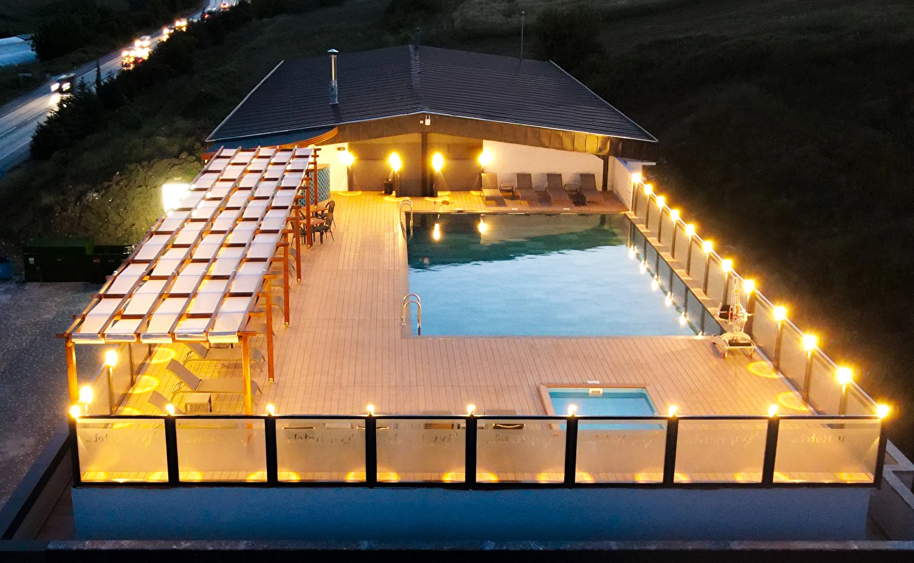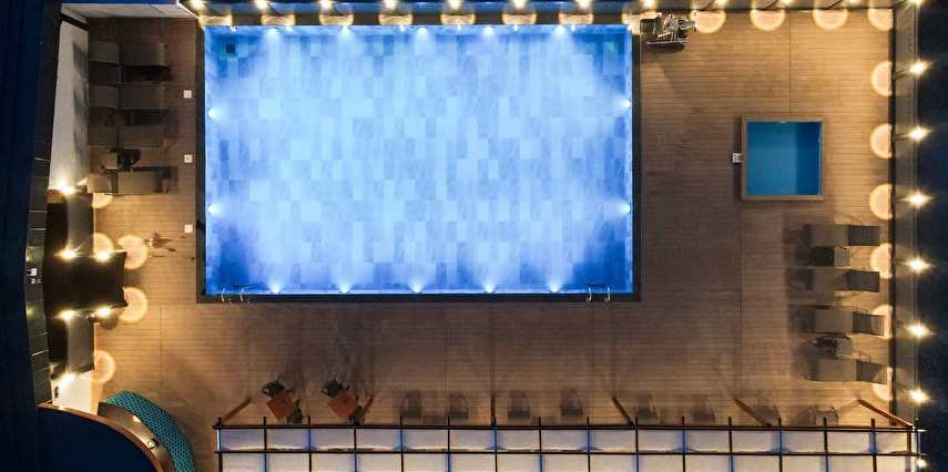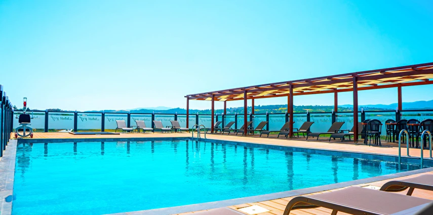 Teras katında bulunan ve kış sezonunda ısıtmalı olarak hizmet veren açık yüzme havuzu,