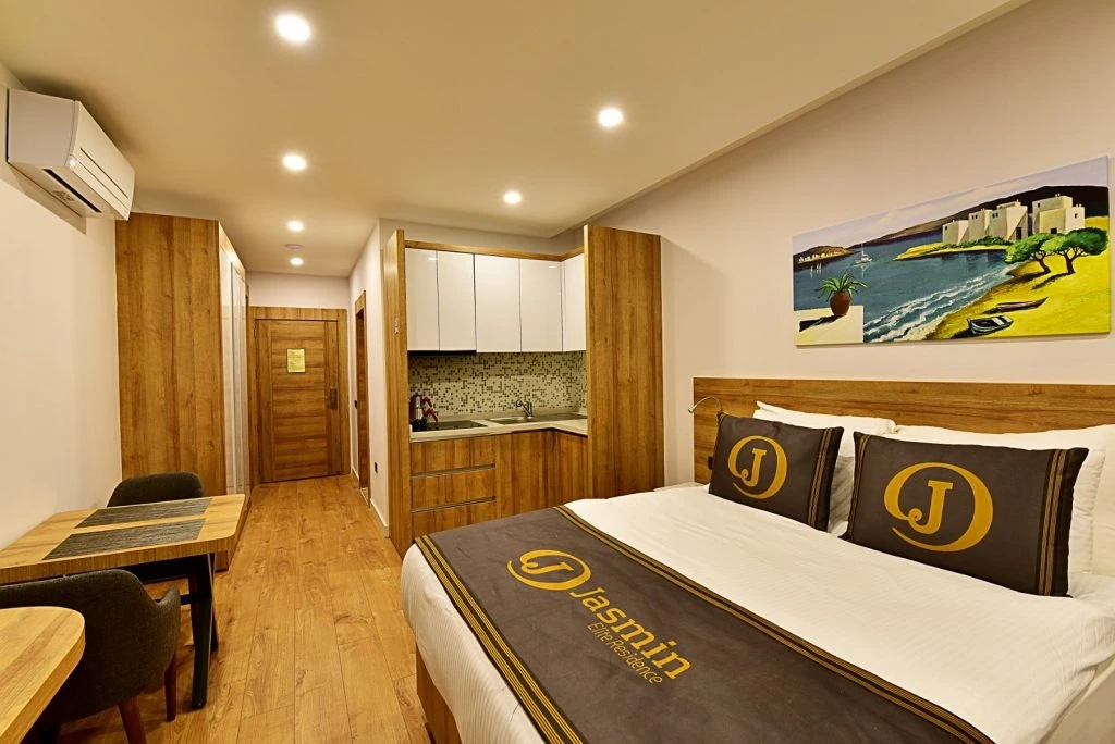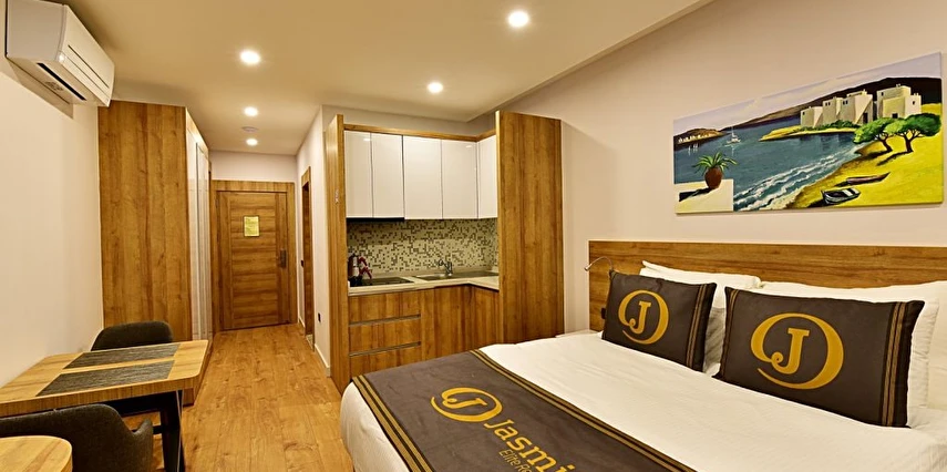 Bu muhteşem daireler Bodrum'un ve Gümbet’in en güzel mevkisinde havuzlu bir site içindedir. Site havuzunuzda deniz manzarasına karşı yüzerken tatilin tadını çıkaracaksınız..Plaj'a 200m mesafededir. Bodrum merkezdeki alışveriş merkezlerine,bar ve restoranlara tesisimizin hemen önünden işleyen minibüs servisleri ile çok kolay bir şekilde ulaşabilirsiniz. Bodrum’da ,Bodrum kalesini veya Antik Tiyatroyu ziyaret edebilir, Bodrum’un meşhur günlük tekne turlarına, su sporlarına ve çeşitli tatil aktivitelerine katılabilir, Bodrum Salı pazarını veya Oasis alışveriş merkezini gezebilir ve içinizi ısıtan güneşiyle tatilinizin keyfini çıkarabilirsiniz. Gümbet’te bulunan Jasmin Elite Residence, Modern dekore edilmiş, ev konforundaki odaları, yüzme havuzu bulunan bahçesi ve sakin atmosferi ile misafirlerini ağırlayan tesis keyifli bir Bodrum tatili vadediyor.