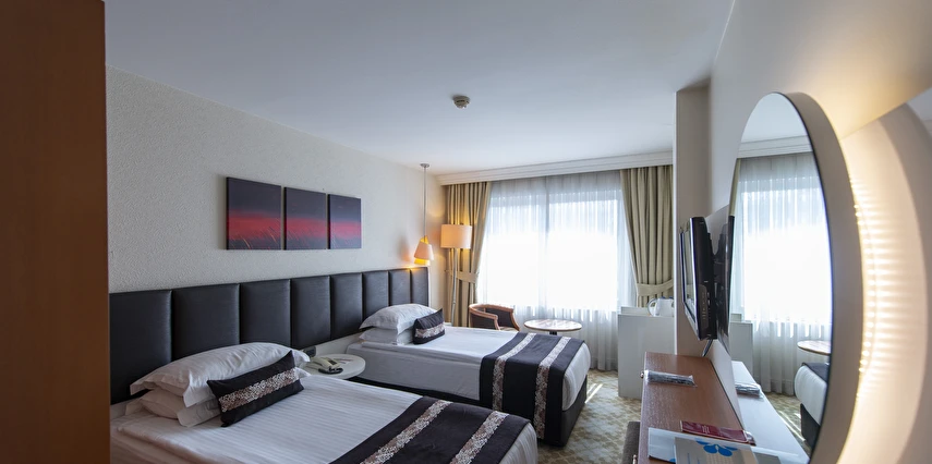 Daha Fazla GösterAdana Seyhan’da hizmet veren Mavi Sürmeli Hotel, hem iş hem de odaklı konaklamalar için uygun bir seçenek sunuyor. Sade ve modern odalarında rahat bir konaklama deneyimi sunan tesis, Adana’yı daha yakından tanımak isteyenler için de ulaşım kolaylığı sağlayan konumuyla öne çıkıyor. Mavi Sürmeli Otel, restoranında misafirlere zengin açık büfe kahvaltı servis ediyor. Adana’nın yöresel lezzetlerini ve dünya mutfaklarından tatları deneyebileceğiniz birçok restoran ve kafe de tesisin çevresinde konumlanıyor. Tam donanımlı toplantı salonlarıyla iş seyahatindeki misafirlerine seçkin imkanlar sağlayan Mavi Sürmeli Otel, huzurlu bir Adana konaklaması için ideal bir adres olarak hizmet veriyor. Şehir merkezinde yer alan Mavi Sürmeli Otel, Adana’nın tarihi güzellikleri ile iç içe bir konuma sahip. Tesis sunduğu olanaklarla hem turistik hem de iş amaçlı seyahatlerin için konaklama alternatifi sunuyor.