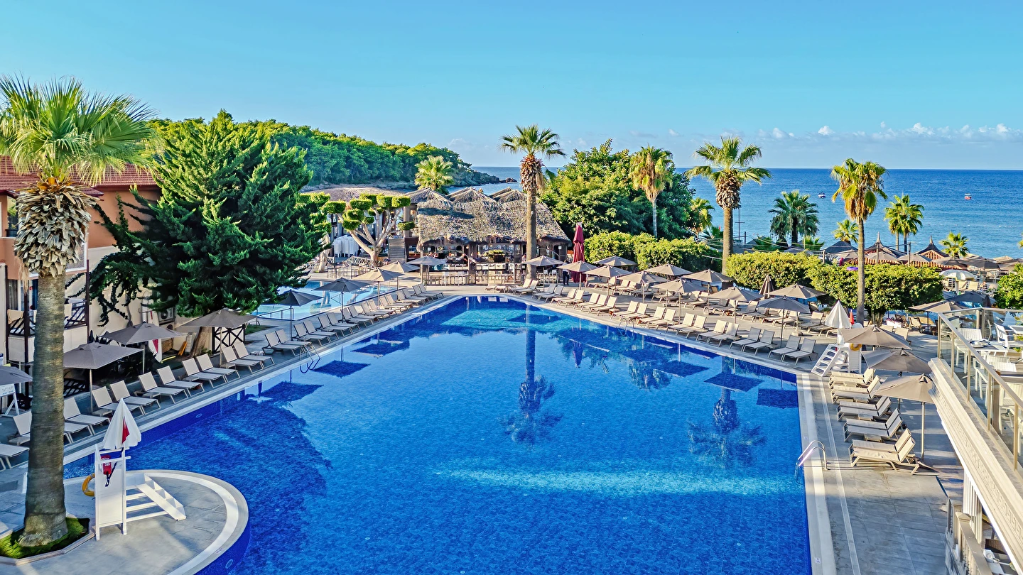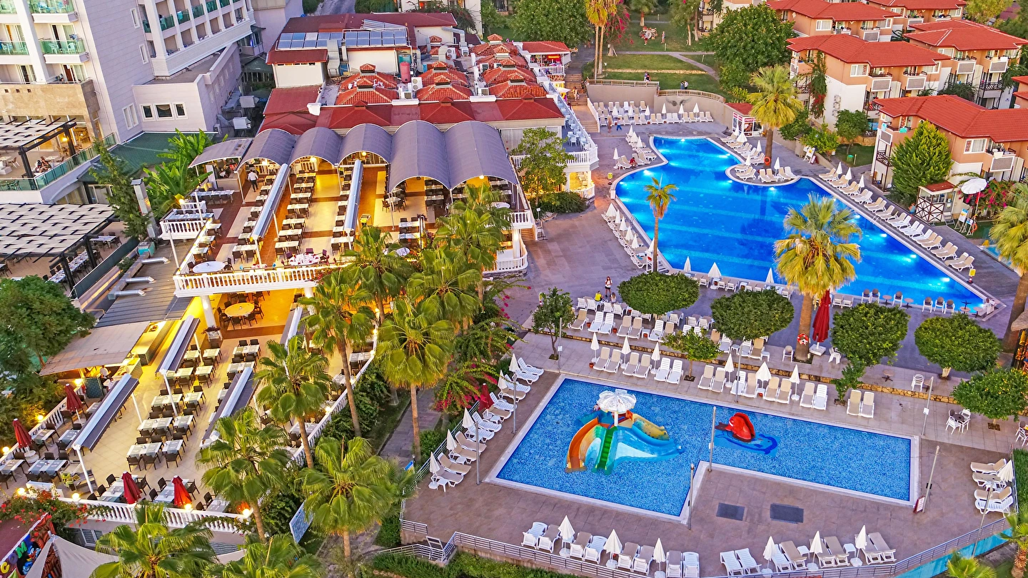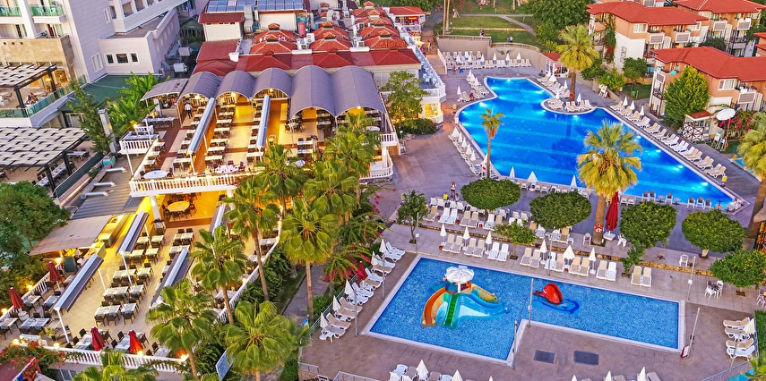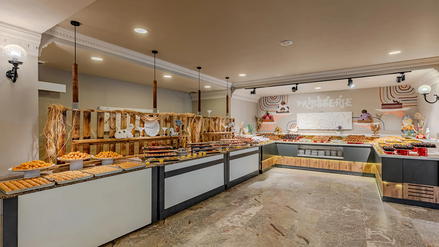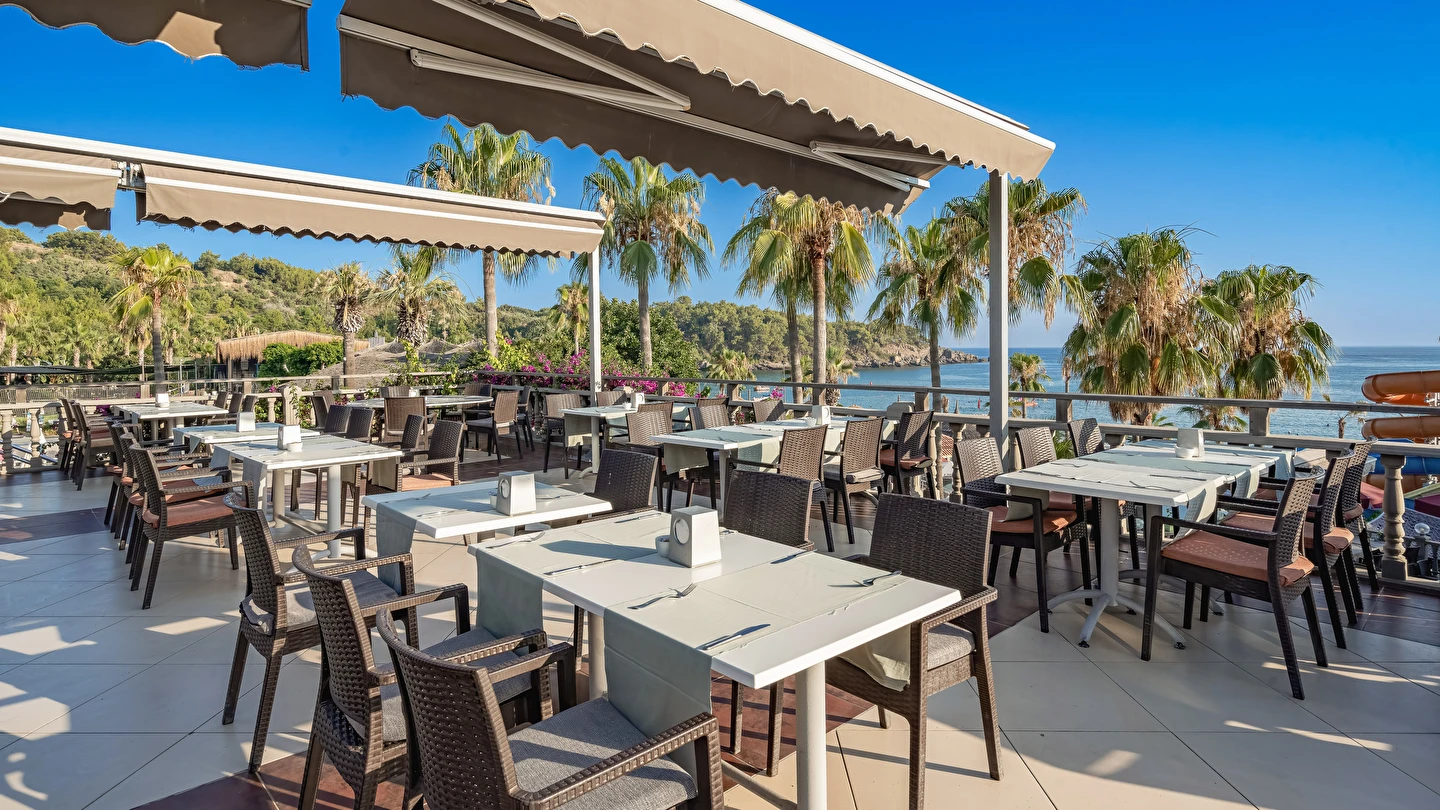 Sabah kahvaltısı, öğle ve akşam yemekleri açık büfe olup tesisin belirlemiş olduğu markalar dahilinde yerli alkollü ve alkolsüz içecekler 10:00 ile 24:00 saatleri arasında ücretsizdir. Taze sıkışmış meyve suları ve ithal içecekler ücretlidir.
