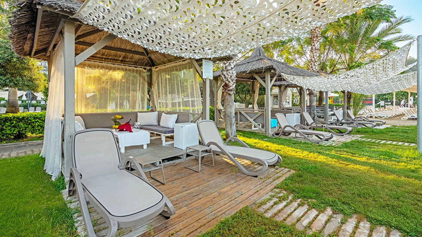 Tesisin plajda ve sahilinde bulunan Gazebo ücretli ve rezervasyonludur.