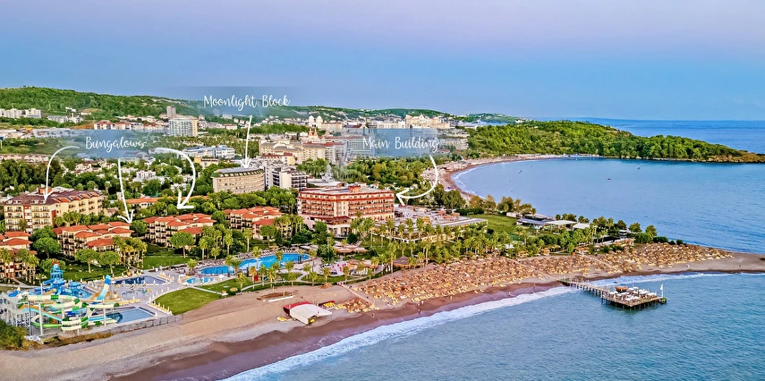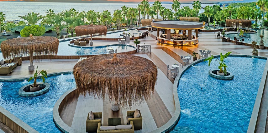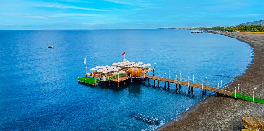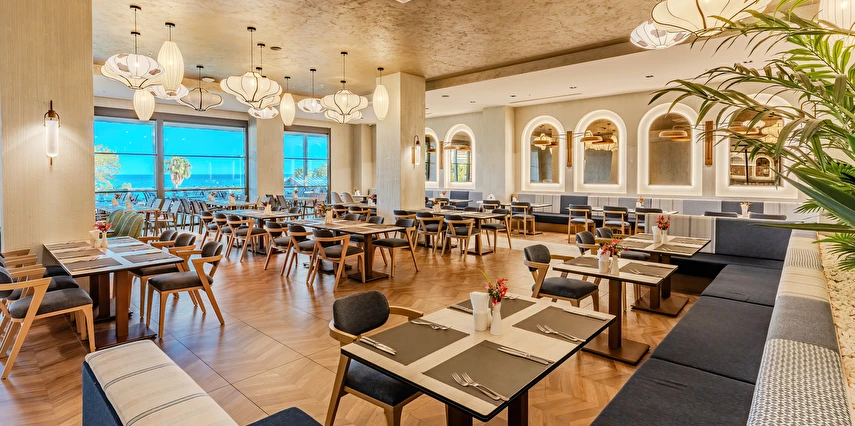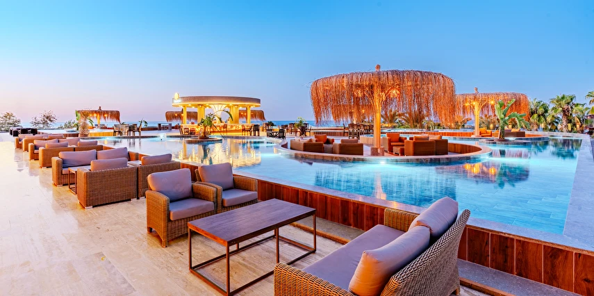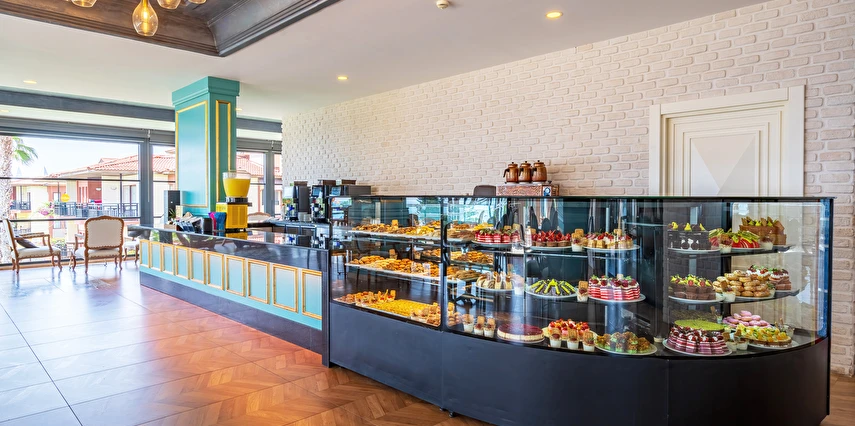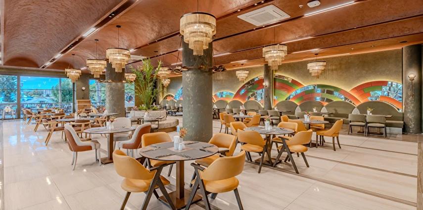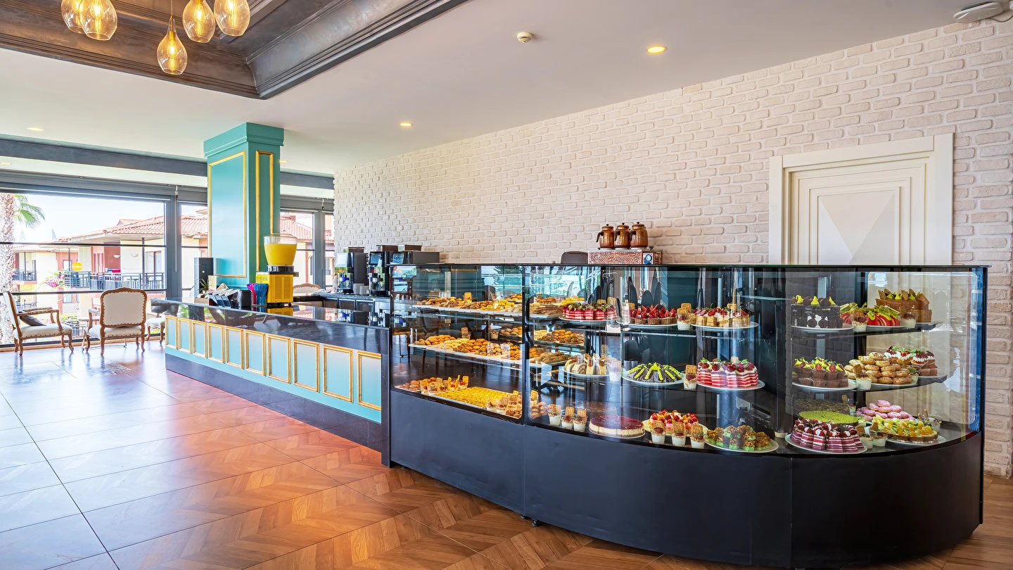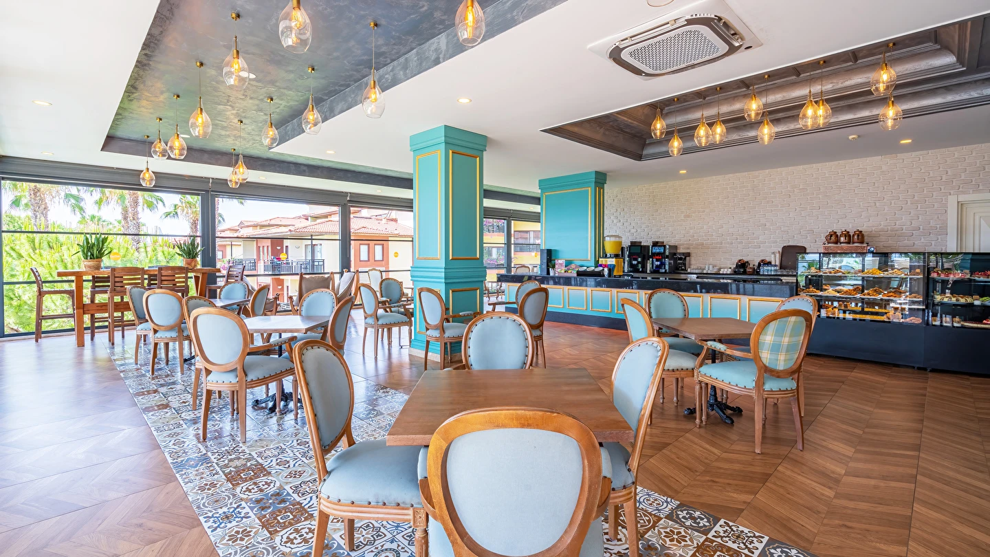 Sabah kahvaltısı, öğle ve akşam yemekleri açık büfe olup tesisin belirlemiş olduğu markalar dahilinde yerli alkollü ve alkolsüz içecekler 24 saat ücretsizdir. Tüm barlarda ve restoranlarda taze sıkılmış meyve suları ücretlidir.