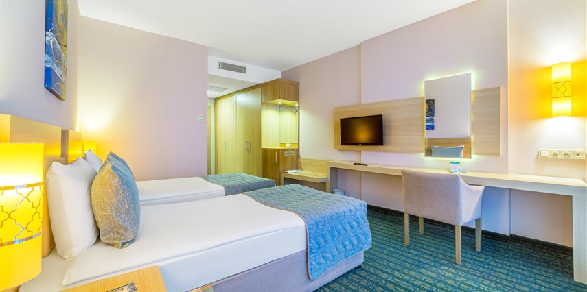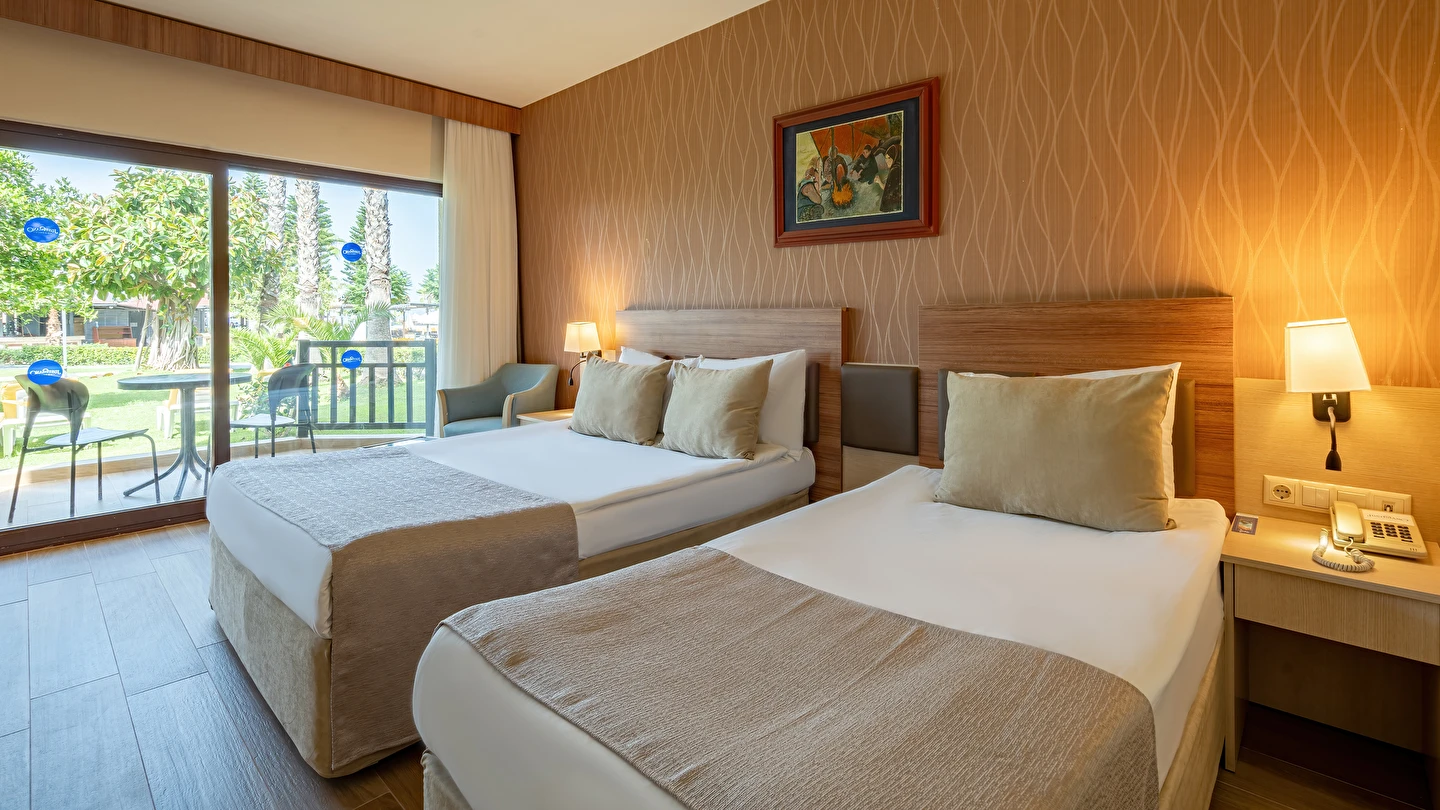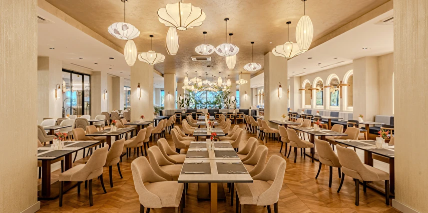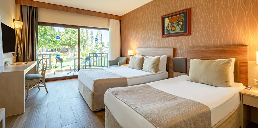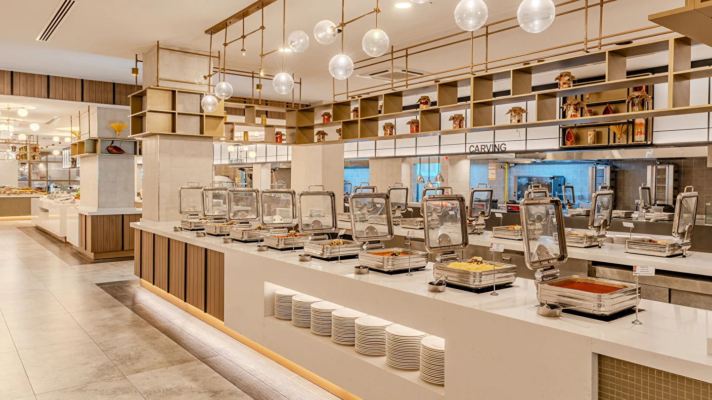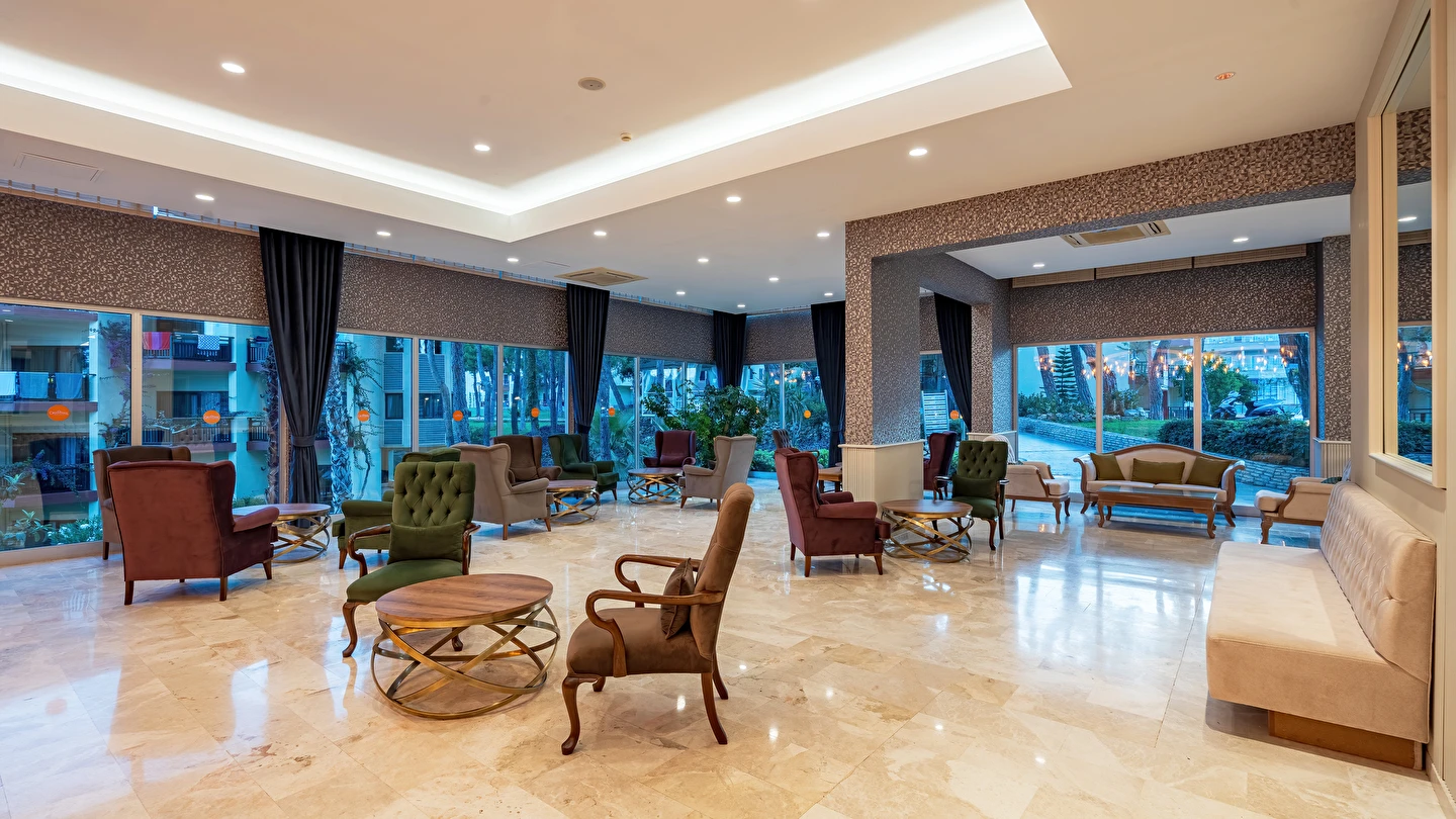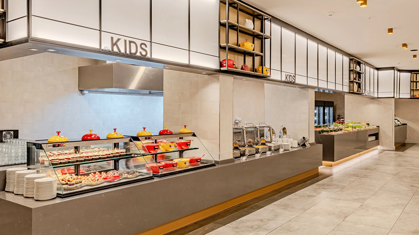 Sabah kahvaltısı, öğle ve akşam yemekleri açık büfe olup tesisin belirlemiş olduğu markalar dahilinde yerli alkollü ve alkolsüz içecekler 24 saat ücretsizdir. Tüm barlarda ve restoranlarda taze sıkılmış meyve suları ücretlidir.