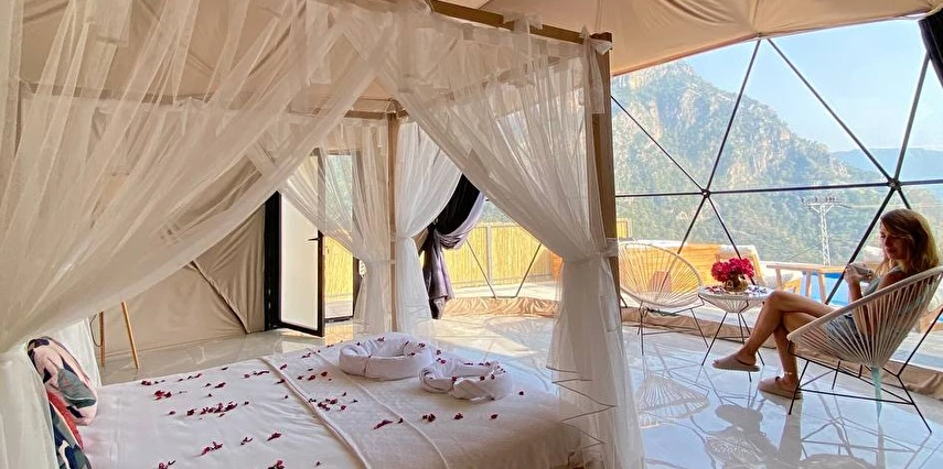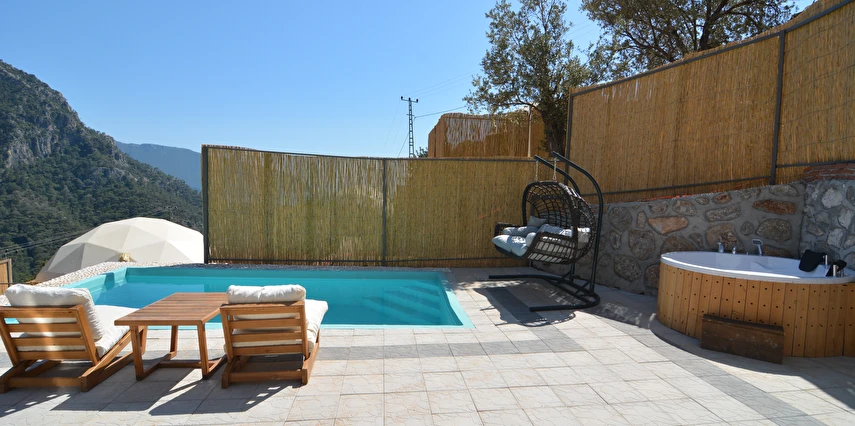 Fethiye Faralya Köyü'nde konumlanmaktadır. Dalaman Havaalanı'na 45 kilometre uzaklıkta yer almaktadır. Lycian Tombs yürüyerek 20 dakika mesafede bulunmaktadır. Kelebekler Vadisi villanın bitişiğinde yer almaktadır