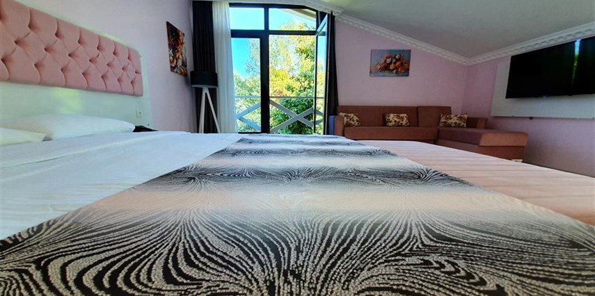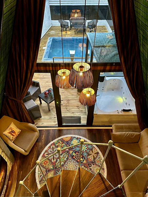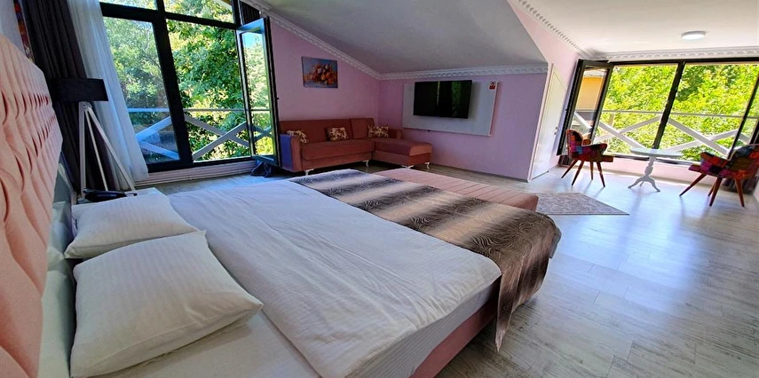 Daha Fazla GösterKadifeli Konak & Bungalov, Kartepe yamaçlarını gören eşsiz manzarası ile konfor ve huzur dolu bir tatil vadediyor. Tesis, ısıtmalı havuzu ile misafirlerini her mevsim ağırlıyor. Misafirler, SPA jakuzisi ile keyif yaparken sıcacık şöminesi ile keyifli vakit geçirebilir. Konforlu ve sade bir dekorasyona sahip odaları ile hizmet veren tesisin odalarının bazılarında özel bahçe ve balkon bulunuyor. Misafirler güne lezzetli bir köy kahvaltısı le başlayabilir, gün içerisinde dere kıyısında ya da ormanlık alanda, dinlendirici doğa yürüyüşlerine çıkabilirler. Kadifeli Konak Boutique Hotel, doğal cennet Maşukiye’nin en güzel noktasında, doğa ile iç içe bir tatil sunuyor. Bir tarafı Sapanca gölü’ne, bir tarafı Kartepe yamaçlarına hakim manzarası ile tesis misafirlerin, huzurlu bir atmosferde ağırlıyor.