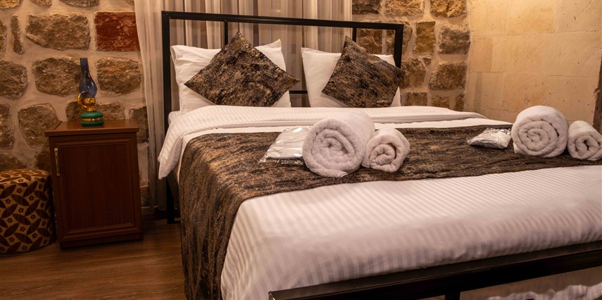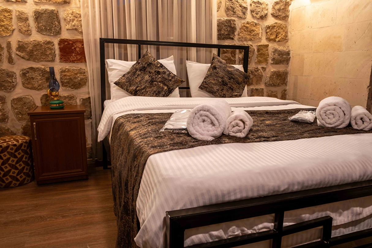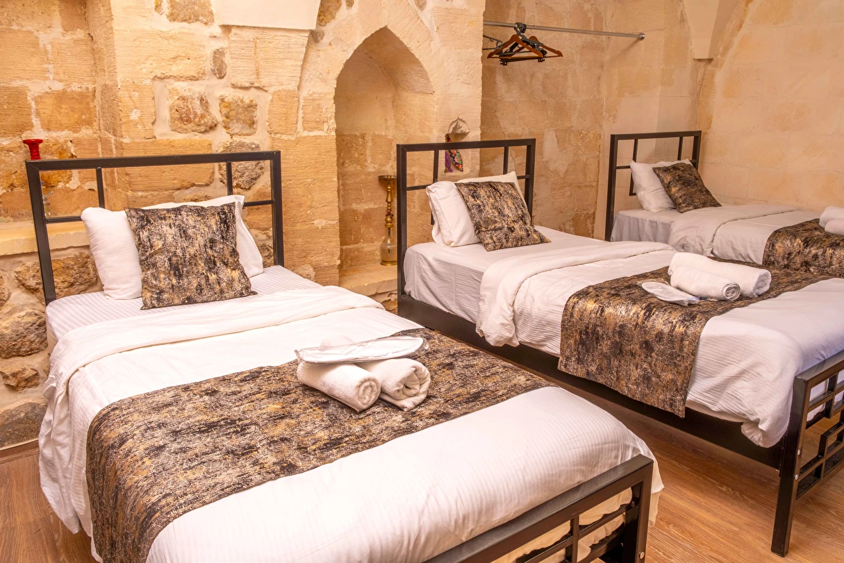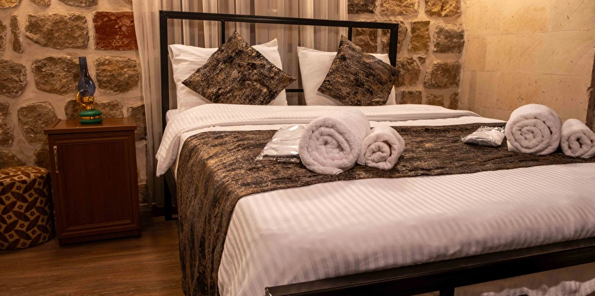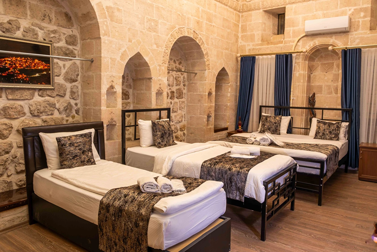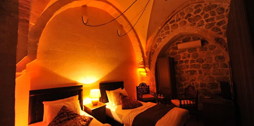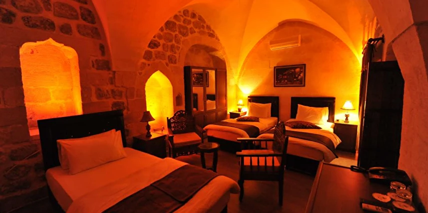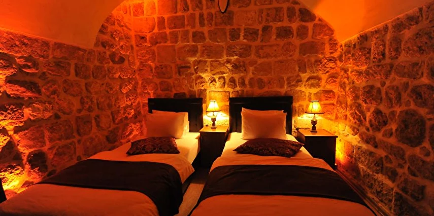 Daha Fazla GösterKadim Otel Mardin merkezinde olup, gezilecek bir çok yere 5 dakikalık yürüyüş mesafesindedir. Tarihte ne zaman inşa edildiği kesin olarak bilinmemesi ile birlikte, yapılan araştırılmada yaklaşık 19.yüzyıldan kalma bir taş yapıdır. Mimarisi ile Mardin'e özgü 18 taş odası ve terası mevcuttur.