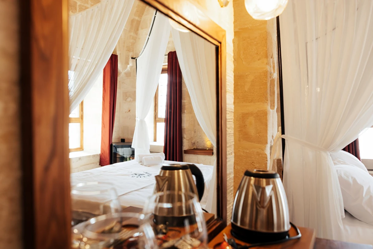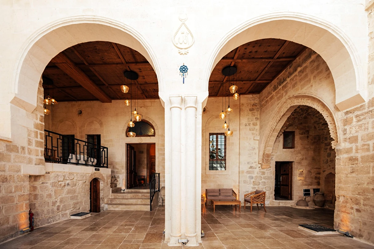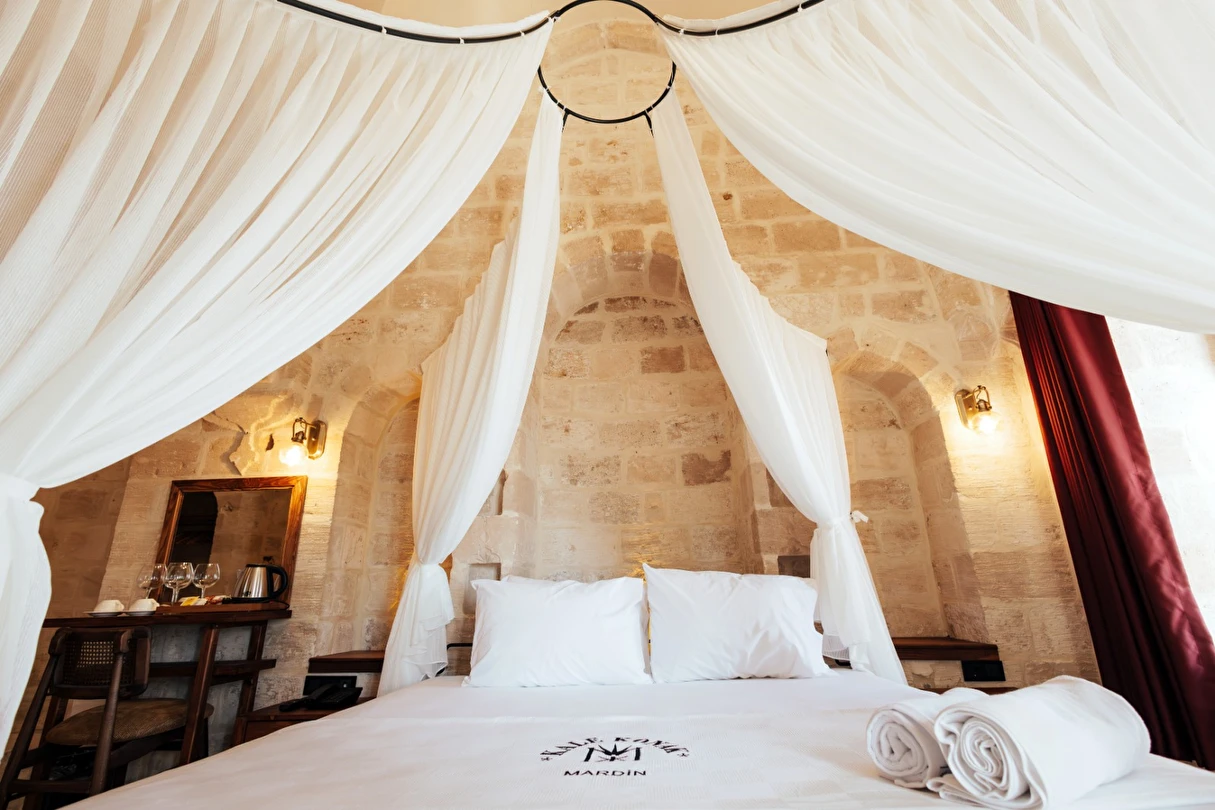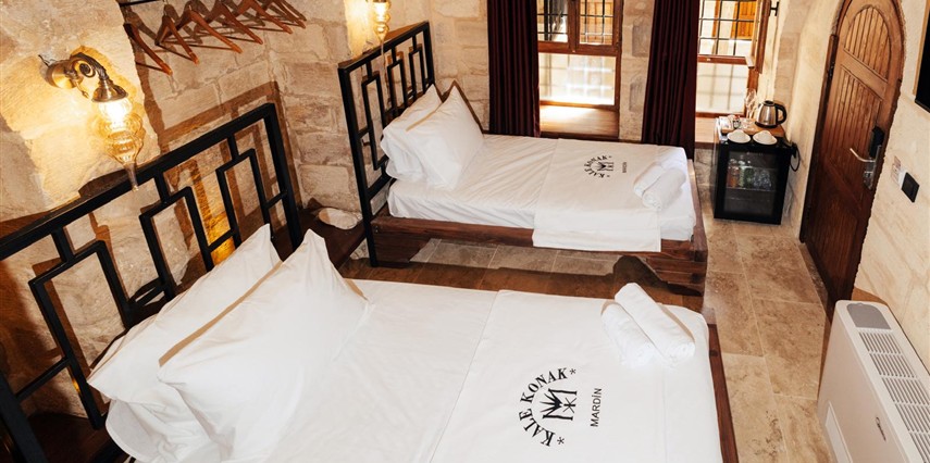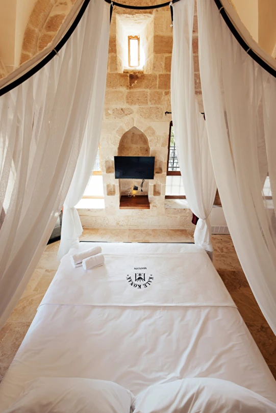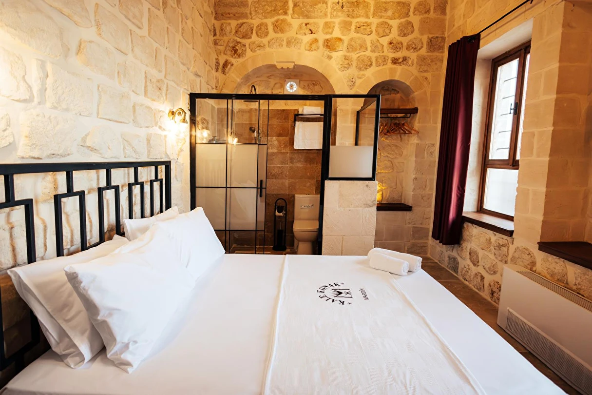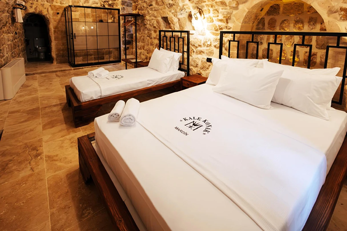 Yüzyıllık taş işçiliğine sahip tarihi konağımızda, geleneksel Mardin mimarisi modern konforla buluşuyor. Sabahları Mezopotamya’ya doğan güneşi izlerken yöresel kahvaltının tadını çıkarabilir, akşamları ise Mardin’in ışıklarıyla bütünleşen büyüleyici atmosferde huzur dolu anlar yaşayabilirsiniz.