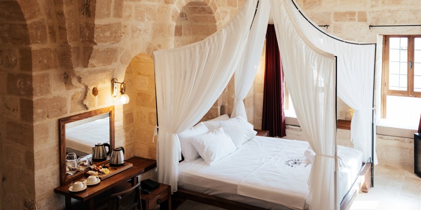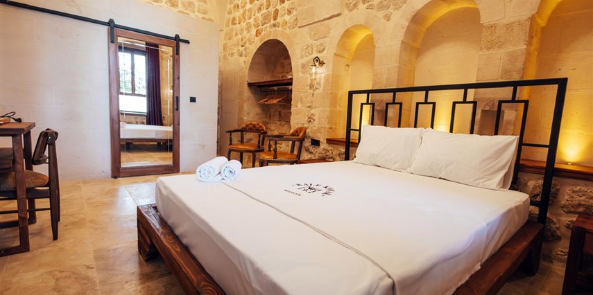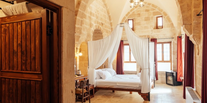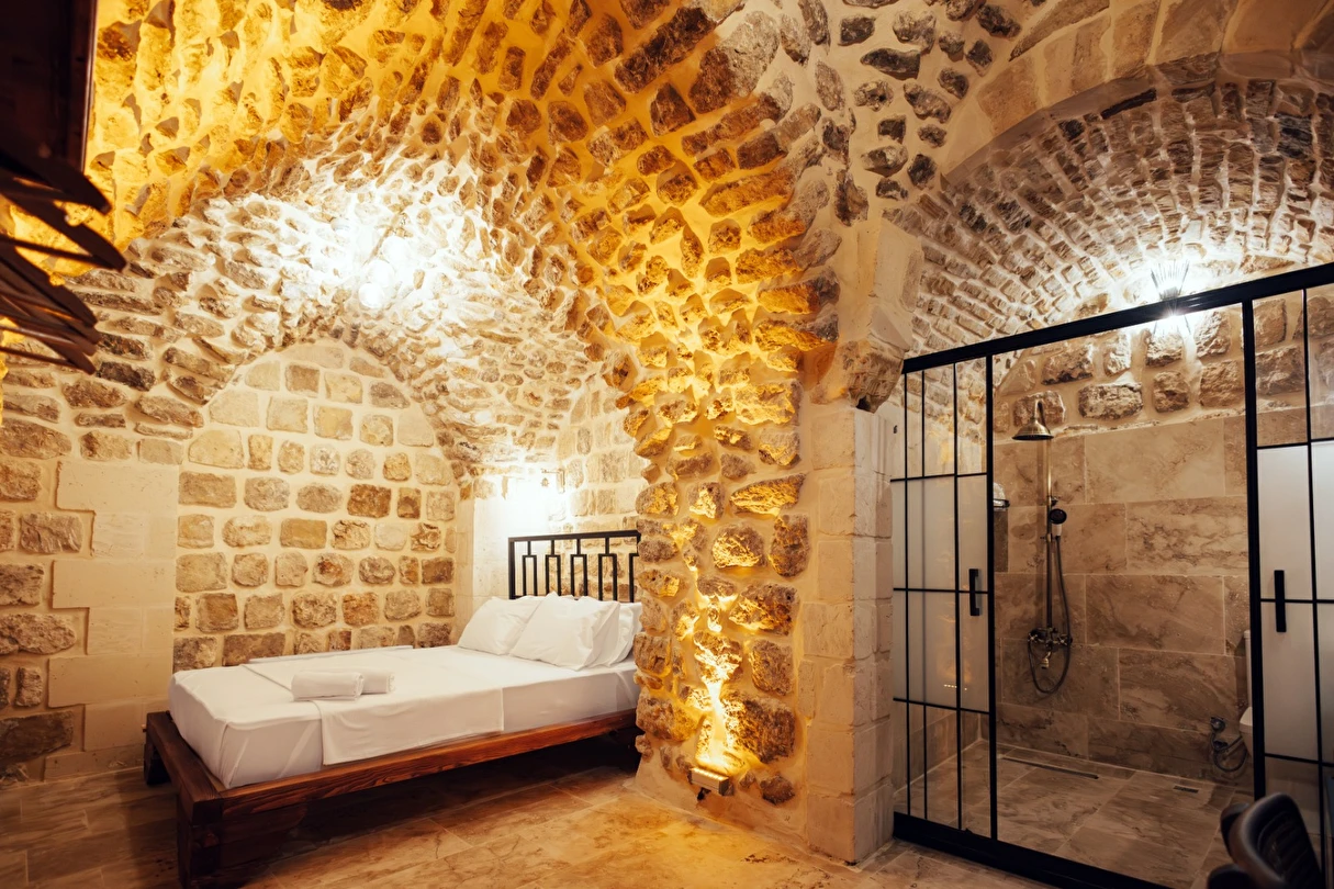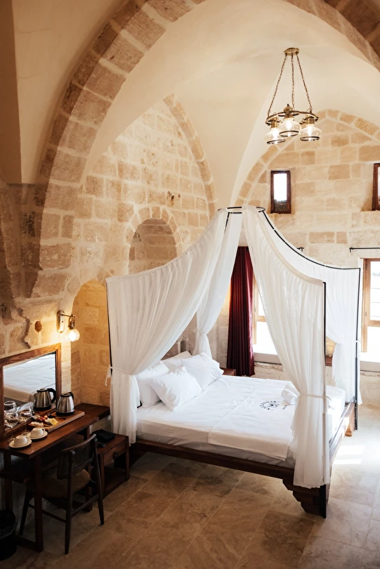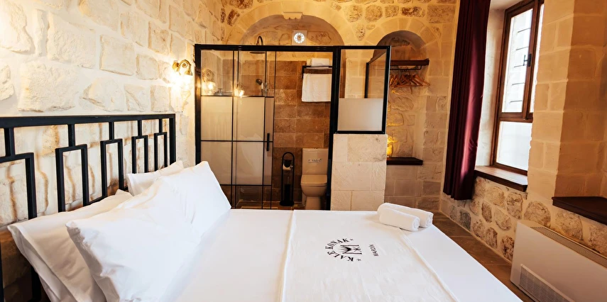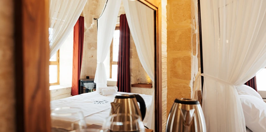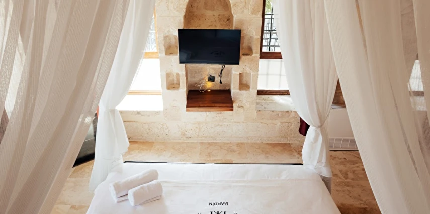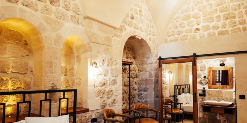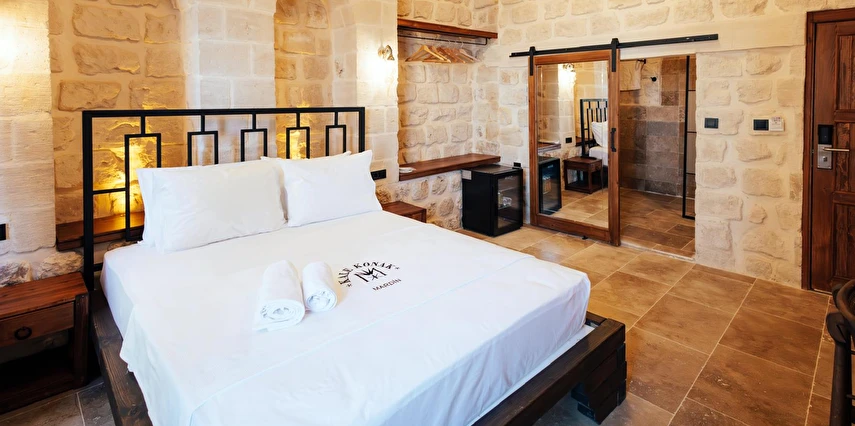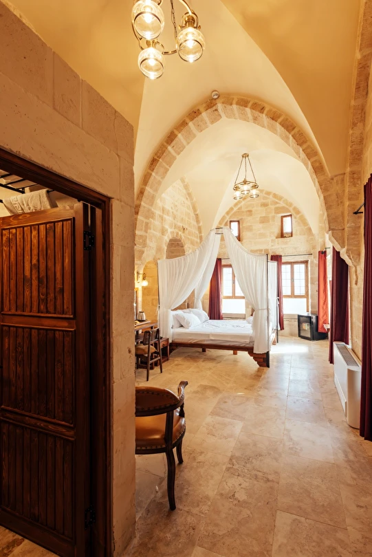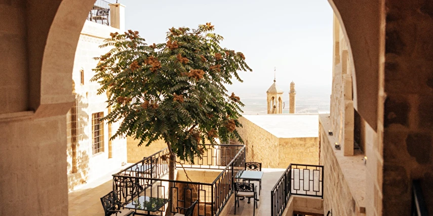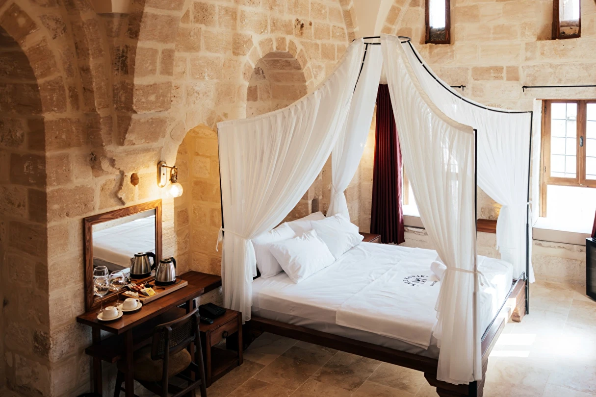 Yüzyıllık taş işçiliğine sahip tarihi konağımızda, geleneksel Mardin mimarisi modern konforla buluşuyor. Sabahları Mezopotamya’ya doğan güneşi izlerken yöresel kahvaltının tadını çıkarabilir, akşamları ise Mardin’in ışıklarıyla bütünleşen büyüleyici atmosferde huzur dolu anlar yaşayabilirsiniz.