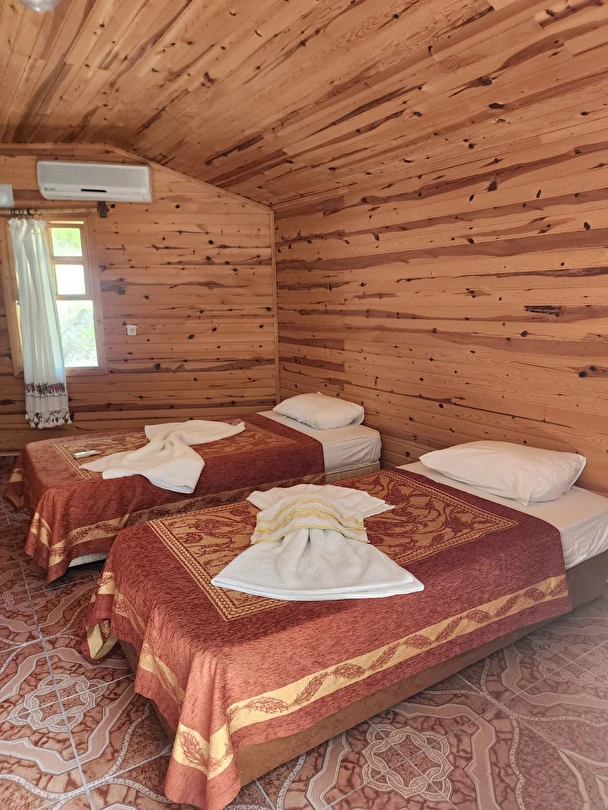 Tamamı ahşap ve doğal malzemelerle inşa edilen bungalovlarımızda, sadelik konforla buluşuyor: