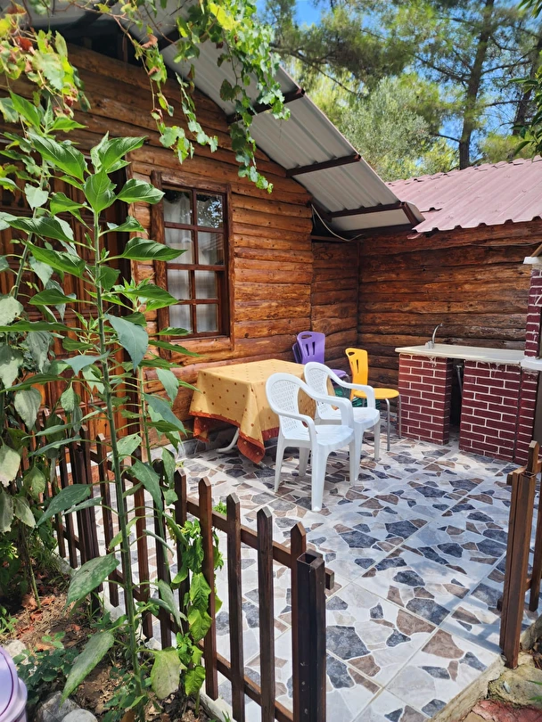 Modern Donanım:Klima, sürekli sıcak su, konforlu yataklar ve her bungalova özel veranda/teras alanı.