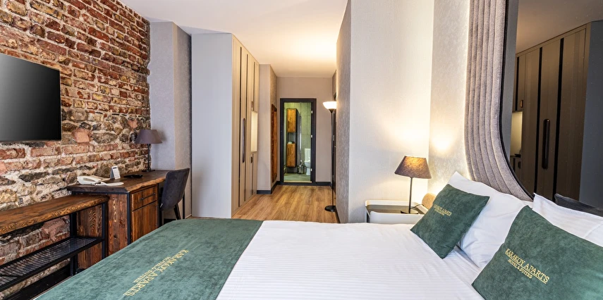Yenilenmiş bir 19. yüzyıl binasına ev sahipliği yaptığı Karaköy Aparts Hotel; İstanbul'un en çekici bölgelerinden Tarihi Yarımada'nın eşsiz atmosferinde, turistik yerler ile iş ve eğlence merkezlerinin kesiştiği noktada misafirlerini ağırlıyor.