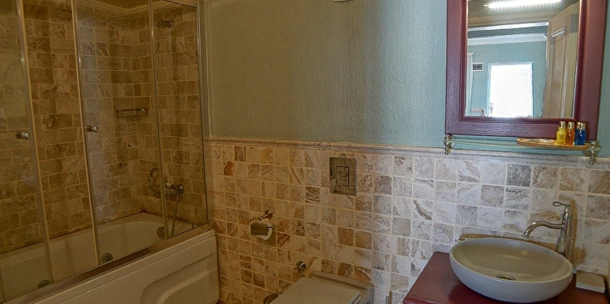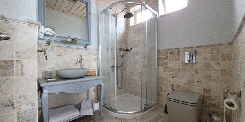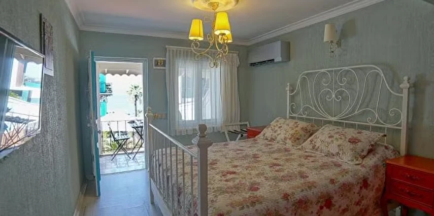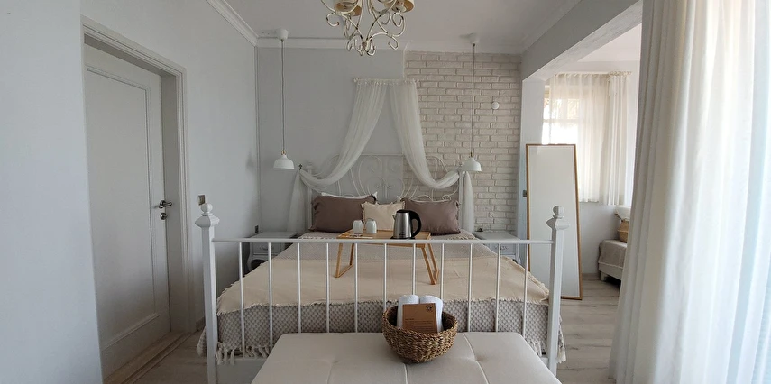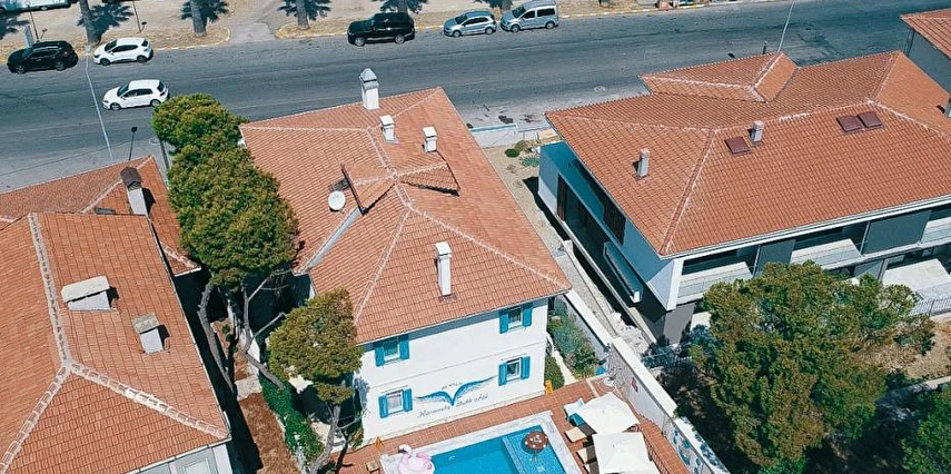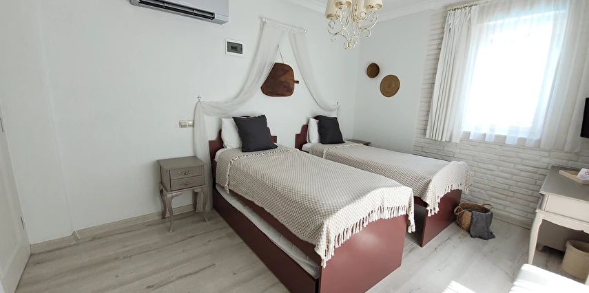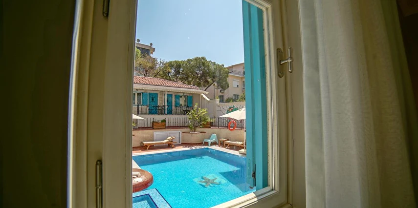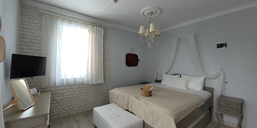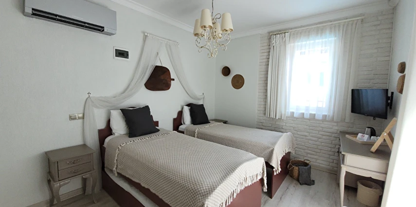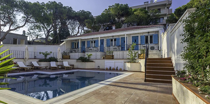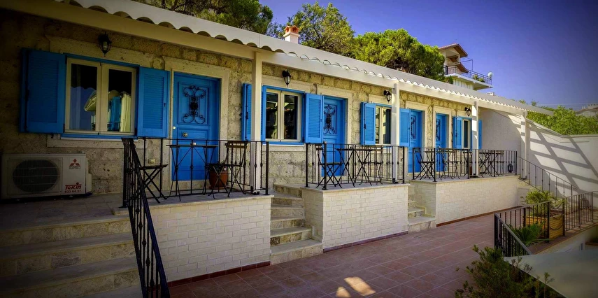 12 odasıyla hizmet veren tesis ücretsiz otopark, kablosuz internet ve açık yüzme havuzu gibi olanaklar sunuyor. Tesise 3 yaşının altında çocuk kabul edilmiyor. Çamlık’taki tesis, tarihi dokusu korunarak restore edilmiş, taş bir yapıda misafirlerini ağırlıyor. Denize sıfır konumdaki tesis; mavi-beyaz mimarisi, sıcak dekorasyonu, panoramik manzarası ve lezzetli mutfağı ile eşsiz bir Ege tatili sunuyor.