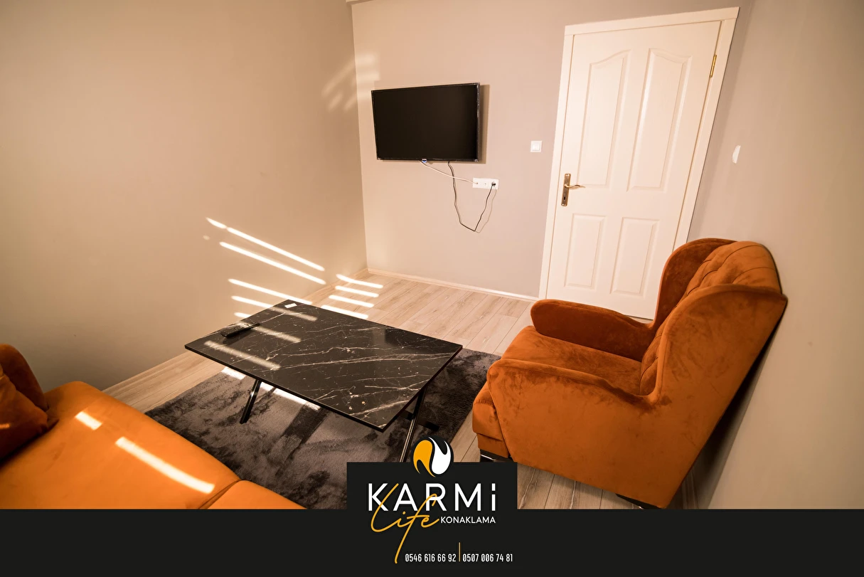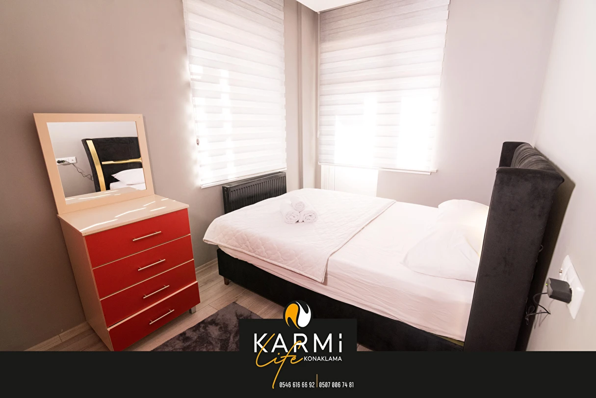 Daha Fazla GösterKarmilife Konaklama olarak, misafirlerimize modern, konforlu ve güvenli yaşam alanları sunmayı misyon ediniyoruz. Ev rahatlığını aratmayacak şekilde tasarlanmış dairelerimizle her misafirimize keyifli bir konaklama deneyimi yaşatmayı, yüksek hijyen standartlarımız ve güler yüzlü hizmetimizle misafir memnuniyetini en üst seviyede tutmayı amaçlıyoruz.