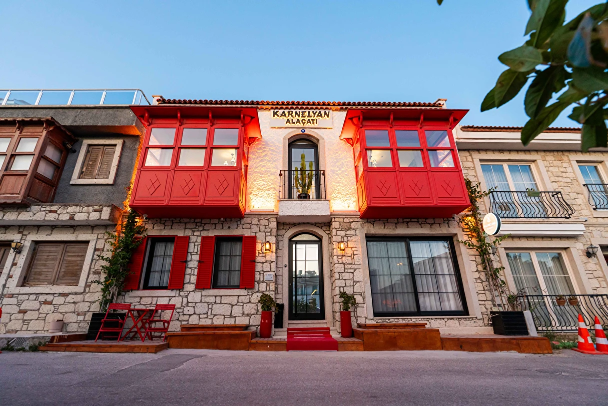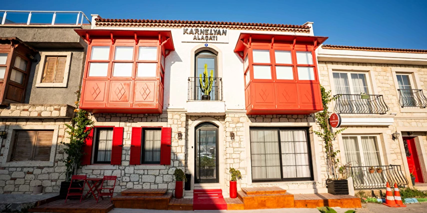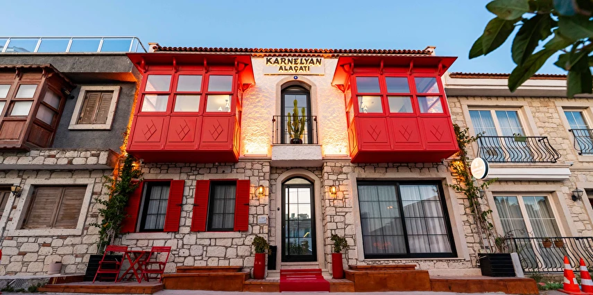 Alaçatı'nın merkezine yakın konumuyla Karnelyan Alaçatı Butik Otel, hem dinlenmek hem de çevreyi keşfetmek isteyenler için ideal bir tercihtir.