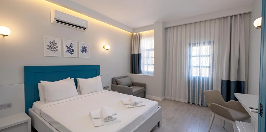 Otelin ferah ve özenle tasarlanmış odaları, günün yorgunluğunu geride bırakabileceğiniz rahat bir ortam sağlarken; deniz manzarası, güne keyifle başlamanıza eşlik ediyor. Kaş Marin Hotel’de misafir memnuniyeti ön planda tutulur; güler yüzlü personel ve kaliteli hizmet anlayışı tatilinizi kusursuz hale getirir.