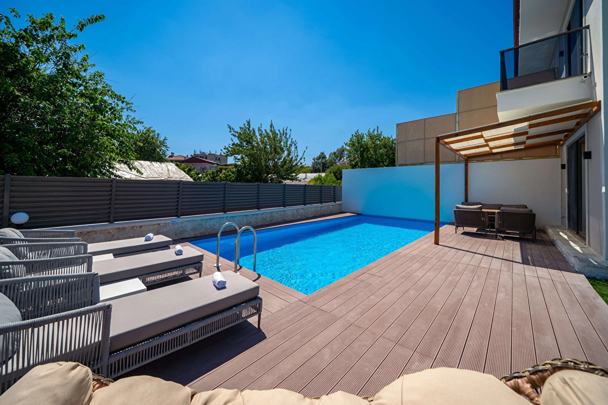 Kaş’ın doğal güzellikleriyle çevrili konumunda yer alan Kaş Pera Villas, konforlu ve ayrıcalıklı bir tatil deneyimi sunmak üzere tasarlanmıştır. Modern mimarisi, ferah yaşam alanları ve özenle düşünülmüş detaylarıyla misafirlerine hem huzurlu hem de keyifli bir konaklama imkânı sağlar.