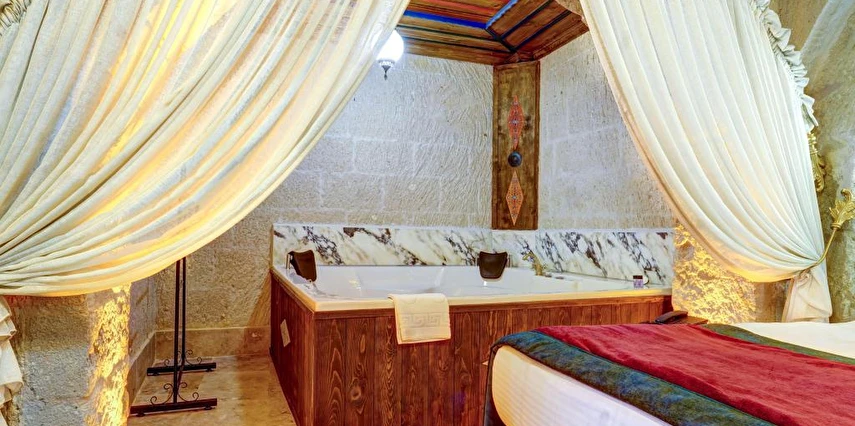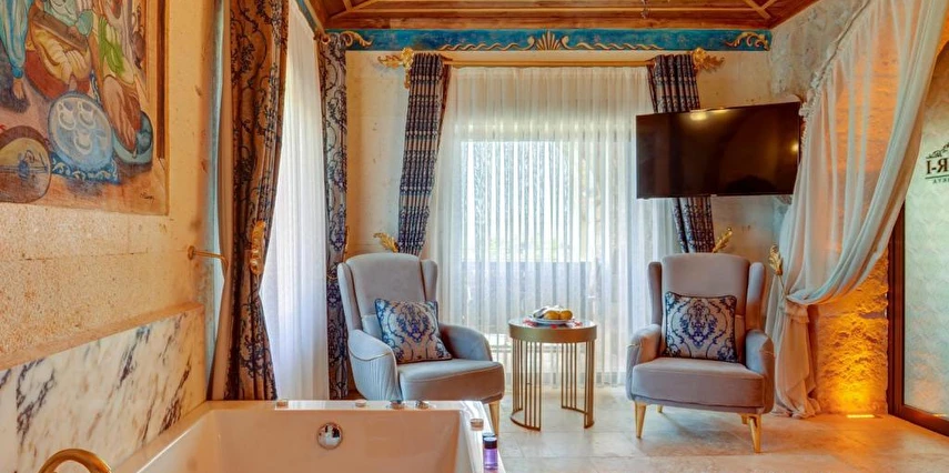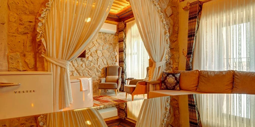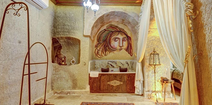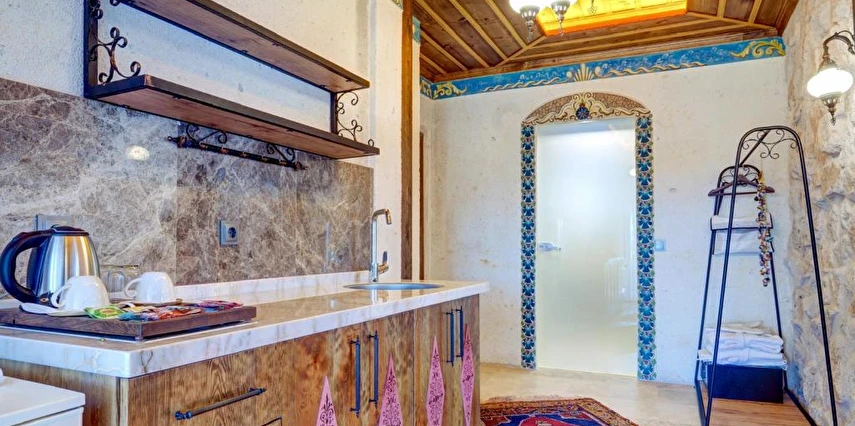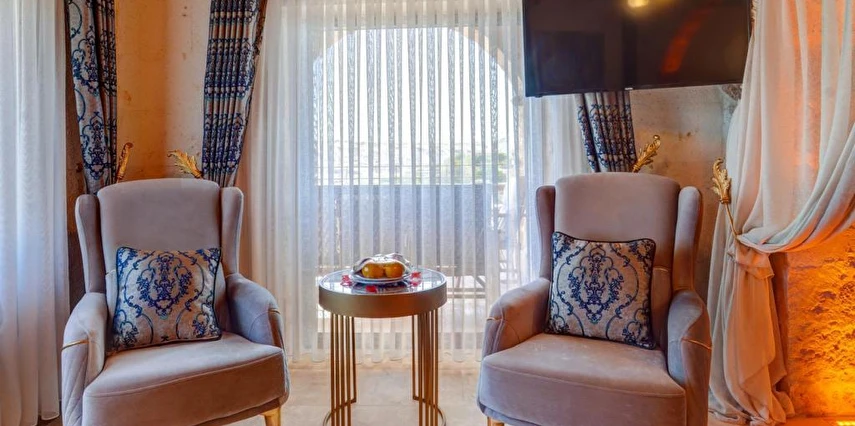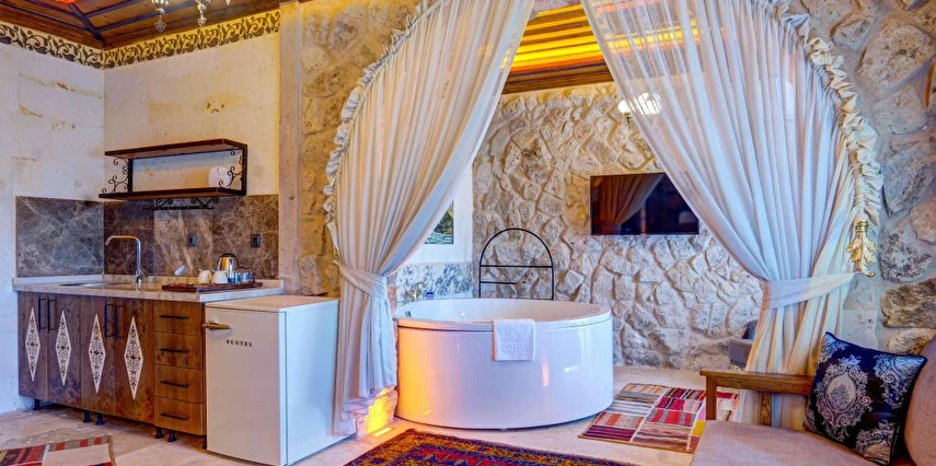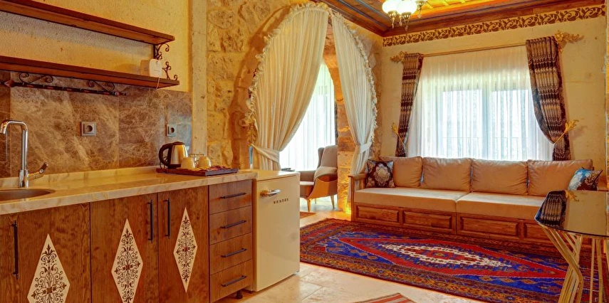Konforlu odaları ile Ortahisar'daki Kasr-ı Kapadokya Cave Suites, aileler için uygun odalar sunmaktadır. Bu odalar bahçe veya şehir manzarasına sahiptir. Ziyaretçiler bahçede veya terasta dinlenebilir, jakuziyi kullanabilir ve tesis bünyesindeki ücretsiz otoparktan yararlanabilirler. Ek özellikler arasında özel balkon, açık oturma alanı ve rahat bir kanepe bulunmaktadır. Kontinental, menü siparişi ve helal yemekler gibi çeşitli kahvaltı seçenekleri sunulmaktadır. Sabah deneyimi, yöresel yemekler, sıcak yemekler, taze pişmiş ürünler ve meyvelerle zenginleştirilmiştir.