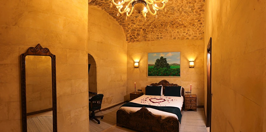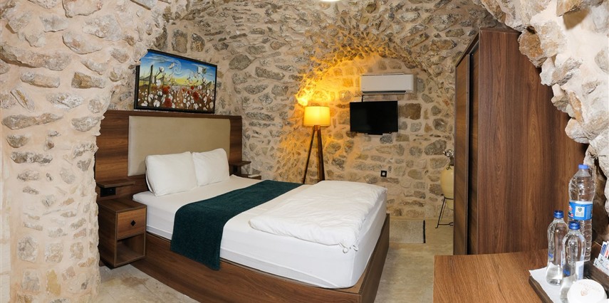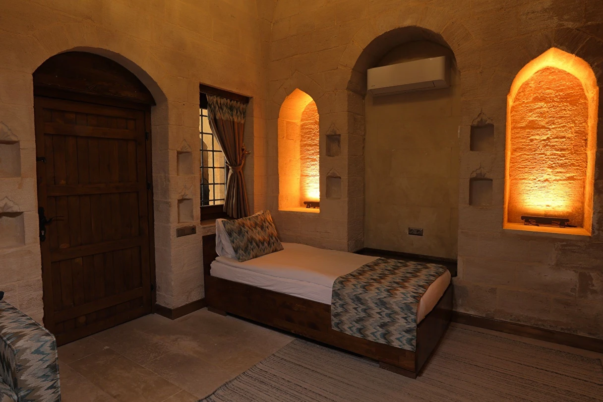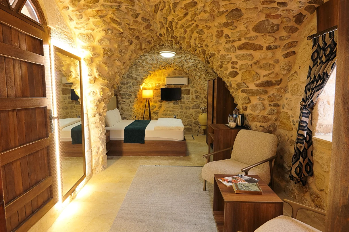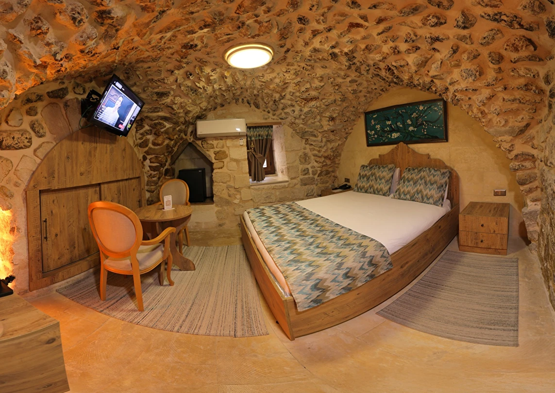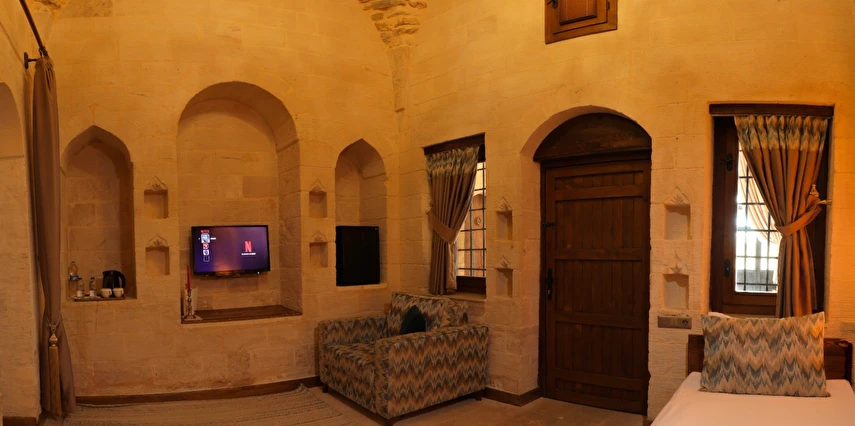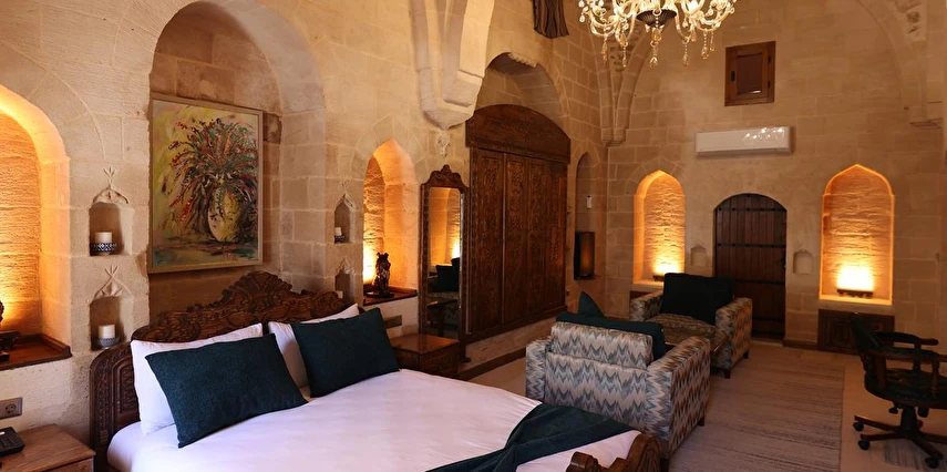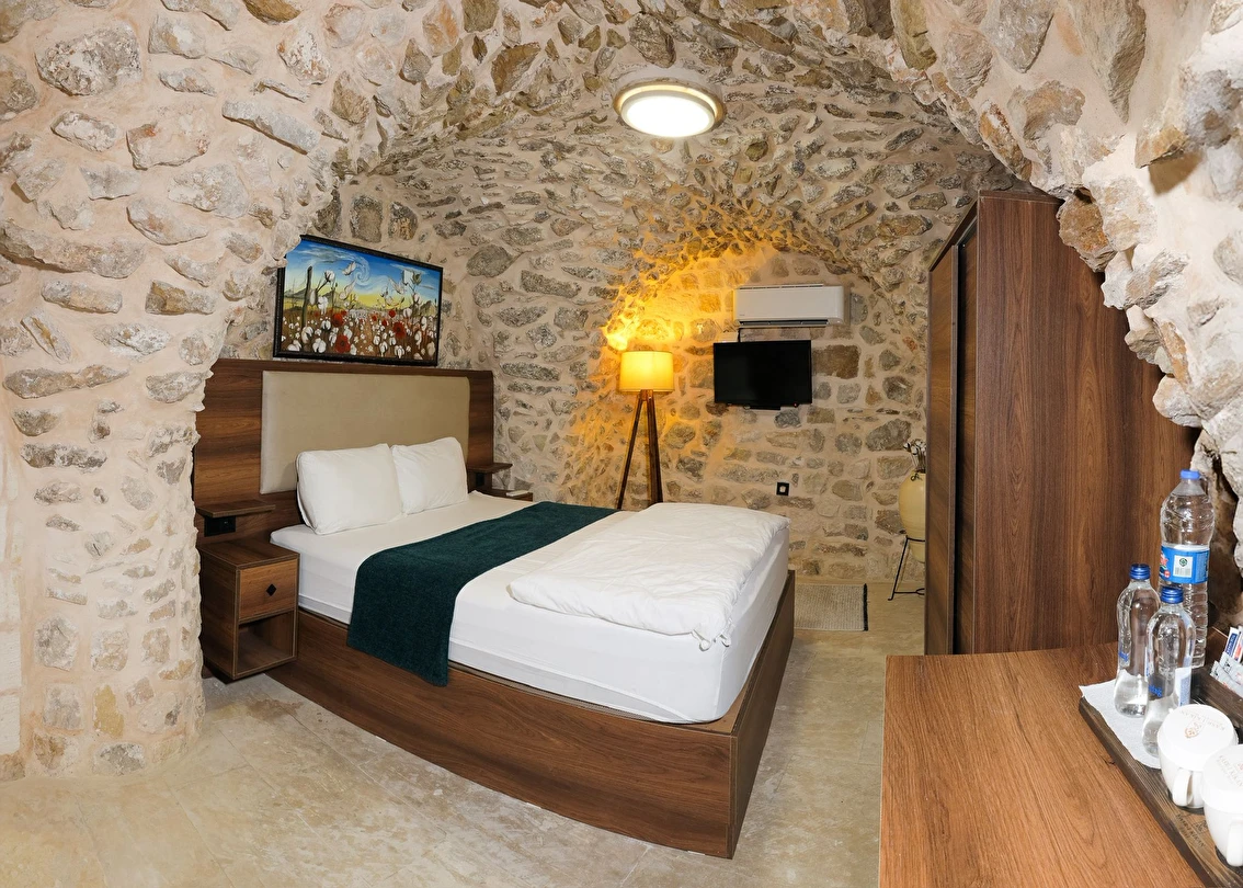 Otelin özenle restore edilmiş taş odaları; klima, ücretsiz Wi-Fi, konforlu yataklar ve özel banyo gibi modern olanaklarla donatılmıştır. Tarihi dokuyu yansıtan dekorasyon, misafirlere Mardin’e özgü otantik bir konaklama deneyimi yaşatırken, sessiz ve huzurlu ortam dinlenmek için idealdir.