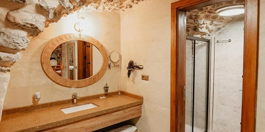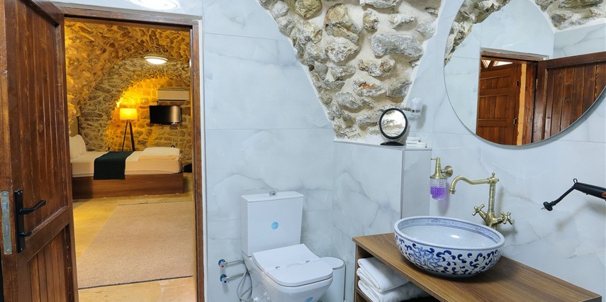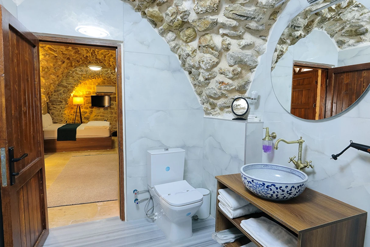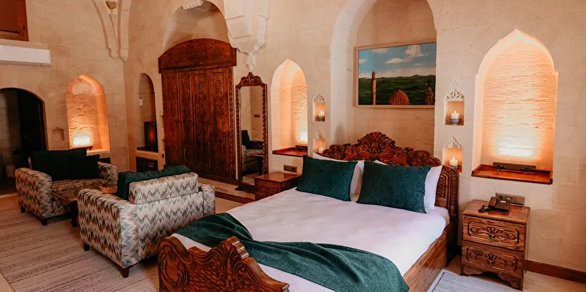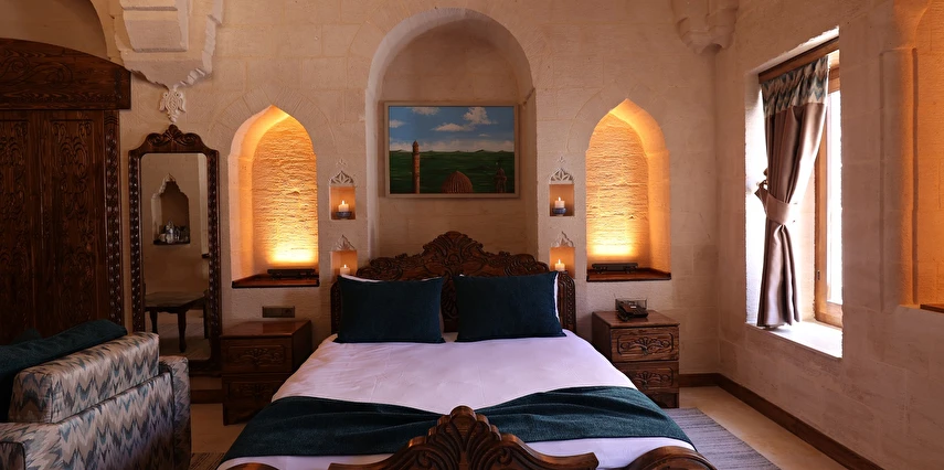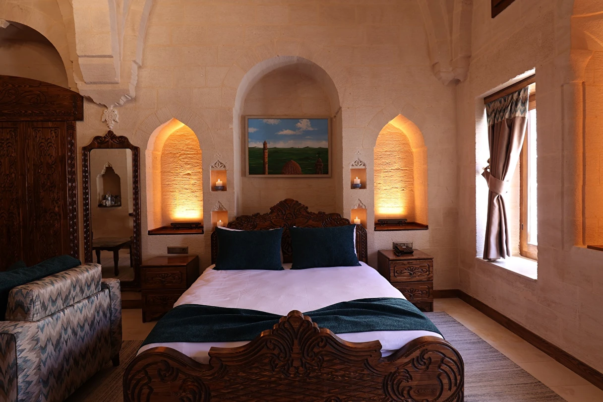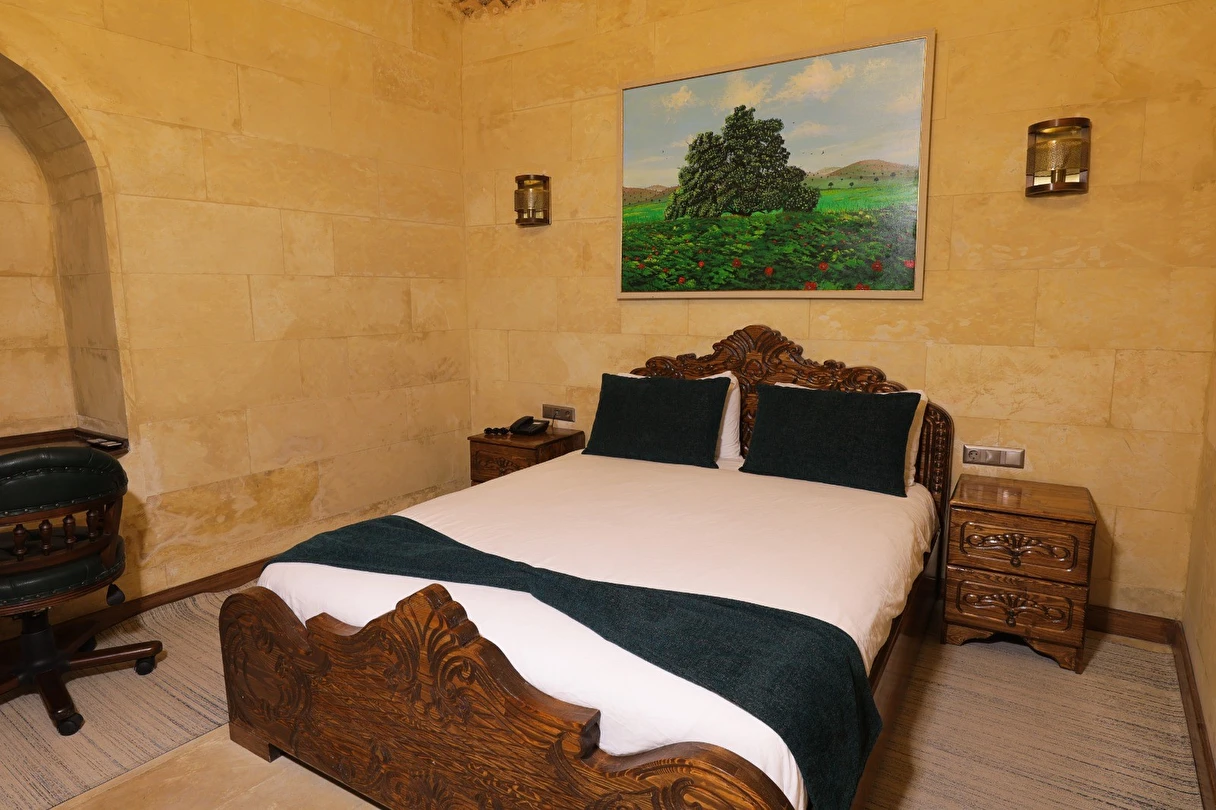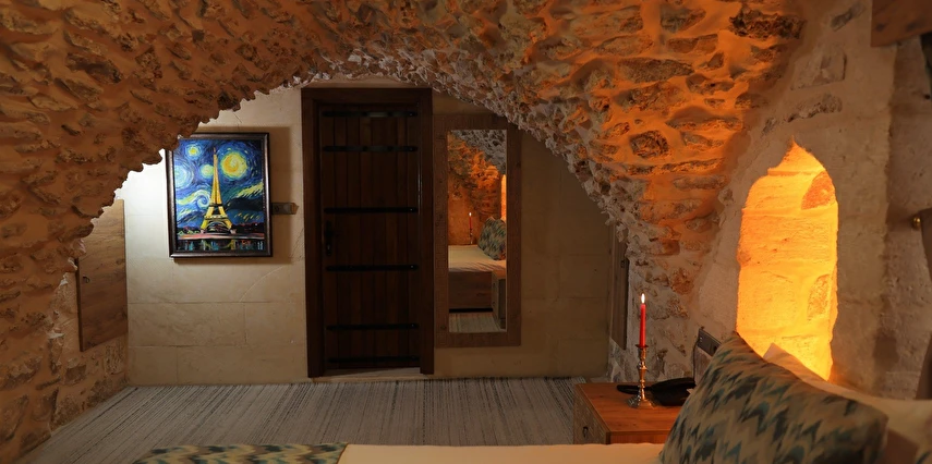 Otelin özenle restore edilmiş taş odaları; klima, ücretsiz Wi-Fi, konforlu yataklar ve özel banyo gibi modern olanaklarla donatılmıştır. Tarihi dokuyu yansıtan dekorasyon, misafirlere Mardin’e özgü otantik bir konaklama deneyimi yaşatırken, sessiz ve huzurlu ortam dinlenmek için idealdir.