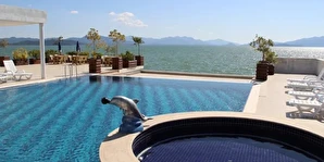 Gözde tatil beldelerinden Marmaris’te konumlanan Kaunos Hotel, eşsiz göl manzarası ve sade dekore edilmiş ev sıcaklığındaki odalarıyla misafirlerine keyifli bir tatil vadediyor. Köyceğiz Otogarı’na 2 km mesafede konumlanan tesis, açık yüzme havuzu ile suyun ve güneşin tadını doyasıya çıkarma imkanı sunuyor. Tesiste göl manzarasını izleyebileceğiniz dinlenme alanlarında vakit geçirebilir, yeşillikler içindeki bahçesinde keyifli vakit geçirebilirsiniz. Sade dekore edilmiş ev konforundaki odaları, konaklama süresince ihtiyaç duyabileceğiniz pek çok imkana sahip. Misafirlere sunulan hizmetler arasında; çamaşırhane, ütü servisi, ortak TV alanı, 24 saat resepsiyon, kablosuz internet bağlantısı ve bar mevcut. Şehrin gürültü ve kalabalığından kaçıp doğa ile baş başa kalmak isteyenler için ideal bir konaklama alternatifi olan Kaunos Hotel’de, özel aracıyla seyahat eden misafirler için otopark imkanı mevcut. Tesisin restoranında güne zengin bir kahvaltı servisi ile başlayabilirsiniz. Tesis misafirleri Kaunos Antik Kenti’ni ve Kaunos Kral Mezarlarını ziyaret edebilir. Gözde tatil beldelerinden Marmaris’te bulunan Kaunos Hotel, göl manzarası eşliğinde huzurlu ve keyifli bir konaklama sunuyor. Göle sıfır konumuyla dikkat çeken tesis, Köyceğiz Otogarı’na 2 km mesafede bulunuyor.