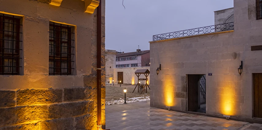 Kayseri'nin tarihi bir mahallesinde bulunan tesisimiz 1800 'lü yıllara dayanan hikayesiyle eşsiz bir mimariye sahiptir. Tesisimizde bulunan odaların tamamı eşsiz mimariye uygun olarak tasarlanmış ve tarihi özgünlük korunmuştur.