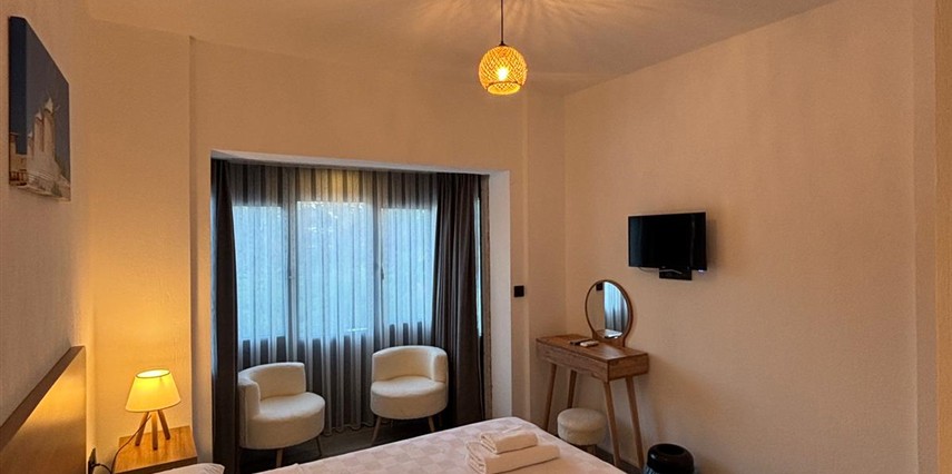 Çeşme’nin sakin ve keyifli atmosferinde yer alan Kırçak Konak, taş mimarisi ve sıcak dekorasyonuyla misafirlerine huzurlu bir konaklama deneyimi sunar. Geleneksel Ege dokusunu modern konforla birleştiren tesis, dinlenmek ve Çeşme’nin güzelliklerini keşfetmek isteyenler için ideal bir tercihtir.