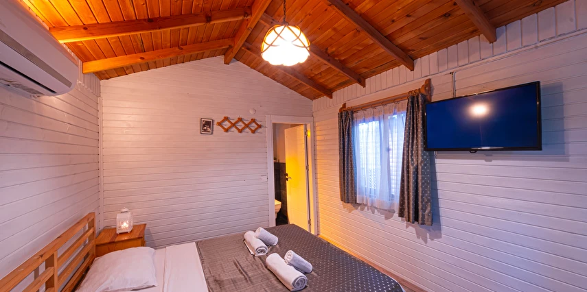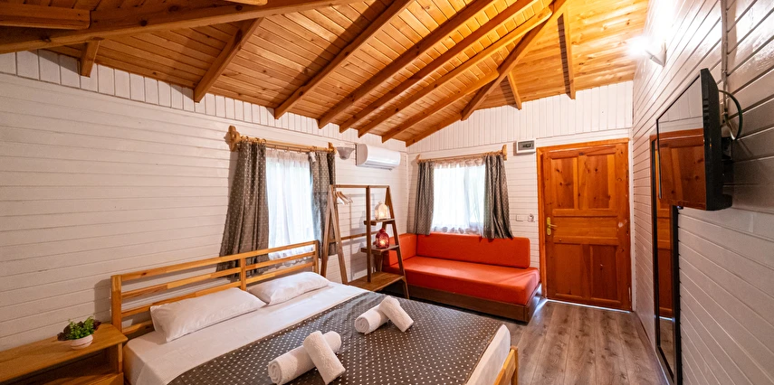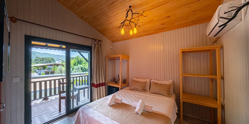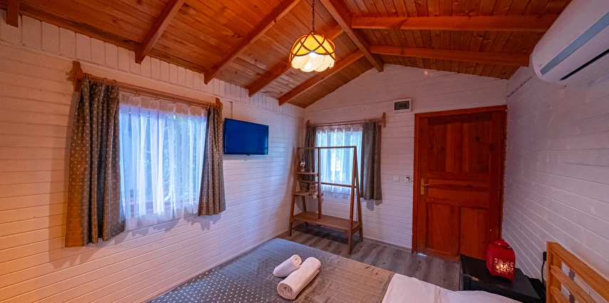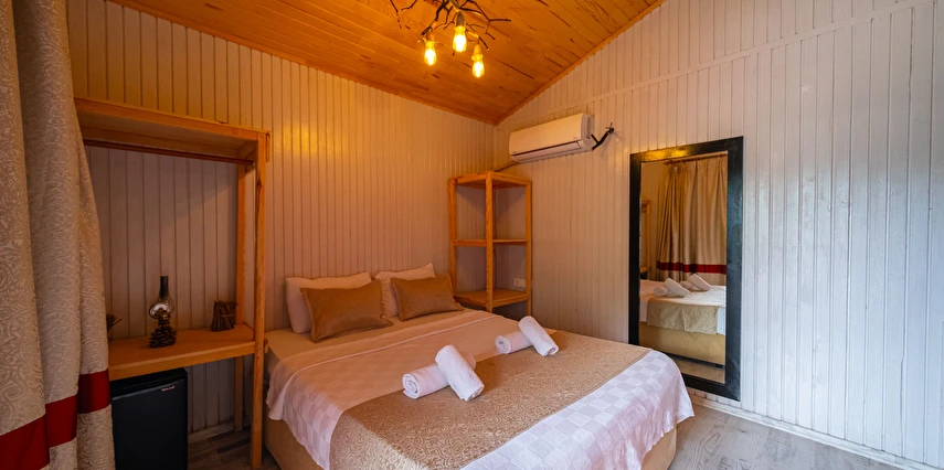 Tüm odalarımız, doğaya zarar vermeyen ahşap yapısıyla sıcak bir atmosfer sunarken, modern ihtiyaçlarınızdan ödün vermeyecek şekilde donatılmıştır: