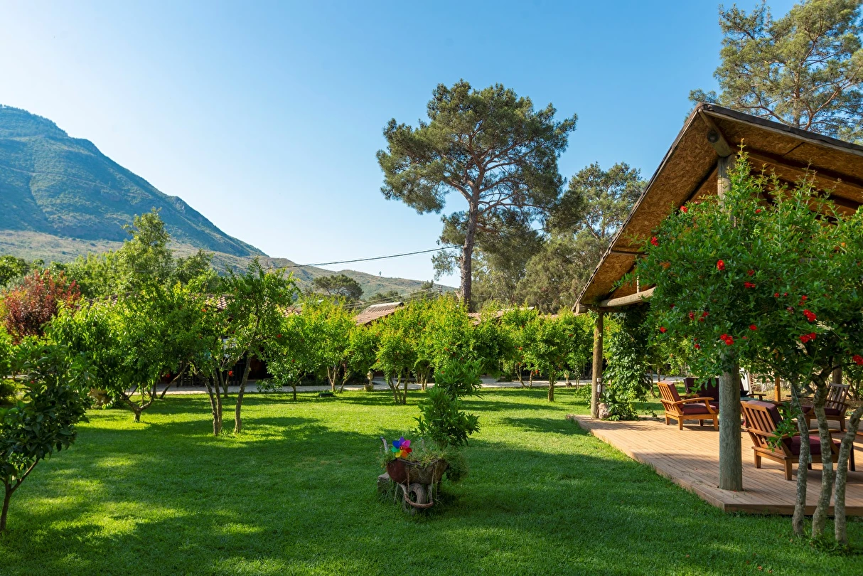 Özel Verandalar:Her bungalovun önünde yer alan, kitabınızı okuyabileceğiniz veya doğayı dinleyebileceğiniz size özel dinlenme alanları.