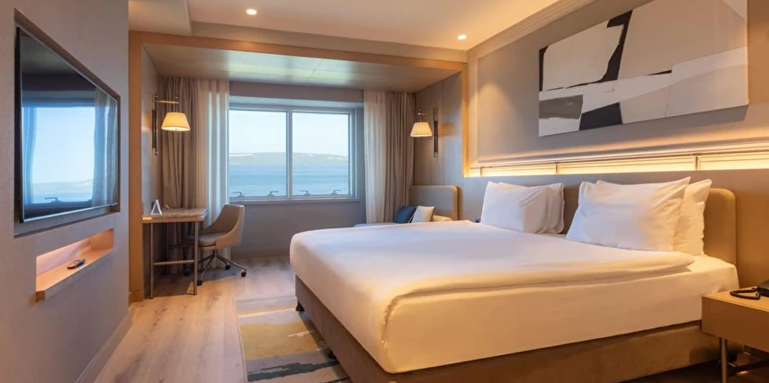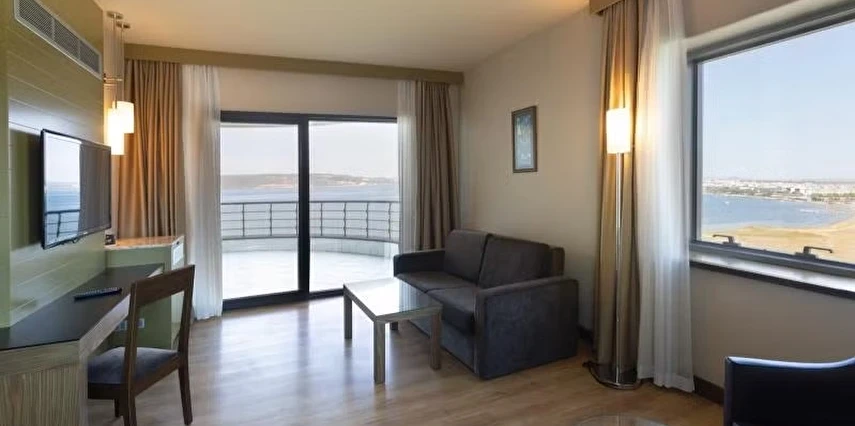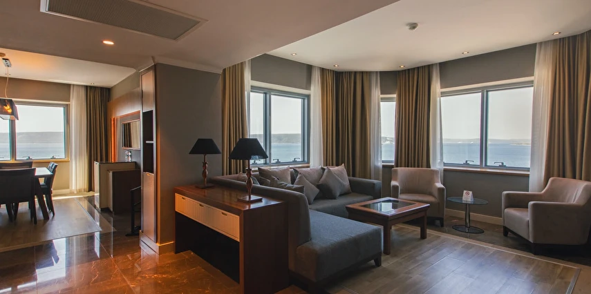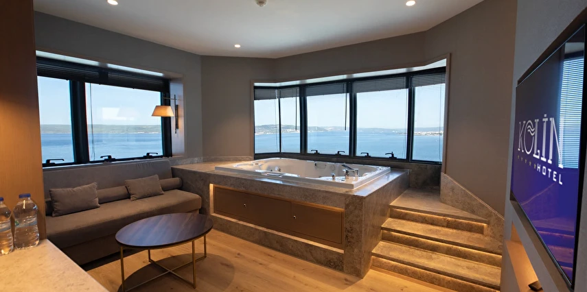 Daha Fazla GösterTarihi dokusu, muhteşem manzarası ve konforlu atmosferi ile boğazın büyüleyici sularının hemen yanı başında yer alan Kolin Hotel Çanakkale, sizlere ister iş, ister eğlence amaçlı seyahatlerinizde unutulmaz anılar biriktirmeniz için mükemmel bir fırsat sunuyor. Restoranlarımızda lezzetli yemeklerin tadını çıkarırken, spa ve wellness olanaklarımızla kendinizi şımartabilirsiniz. Sizleri ağırlamaktan mutluluk duyuyoruz ve bu güzel şehirdeki maceranıza hoş geldiniz diyoruz!