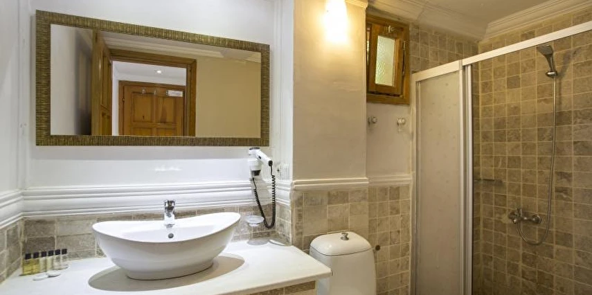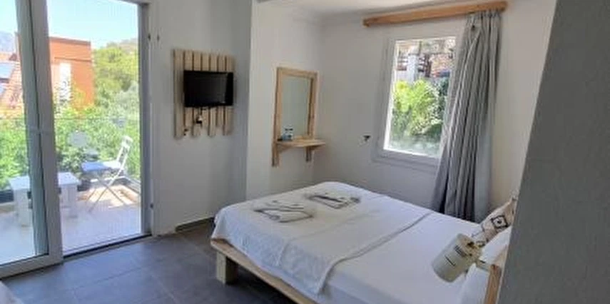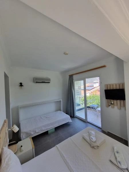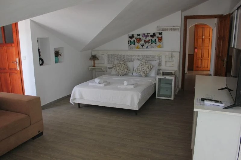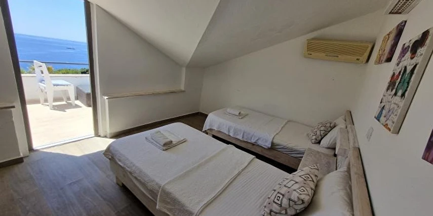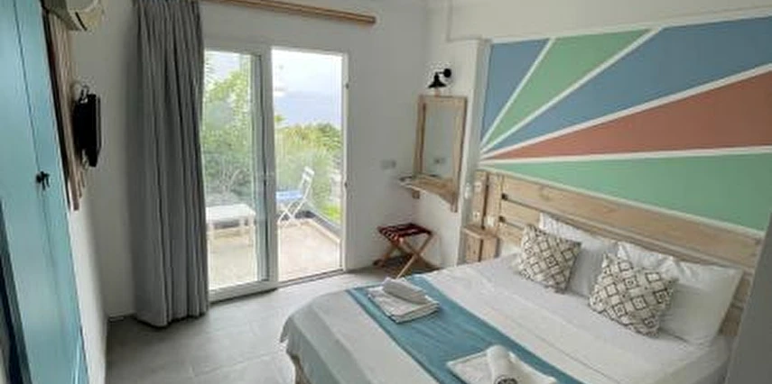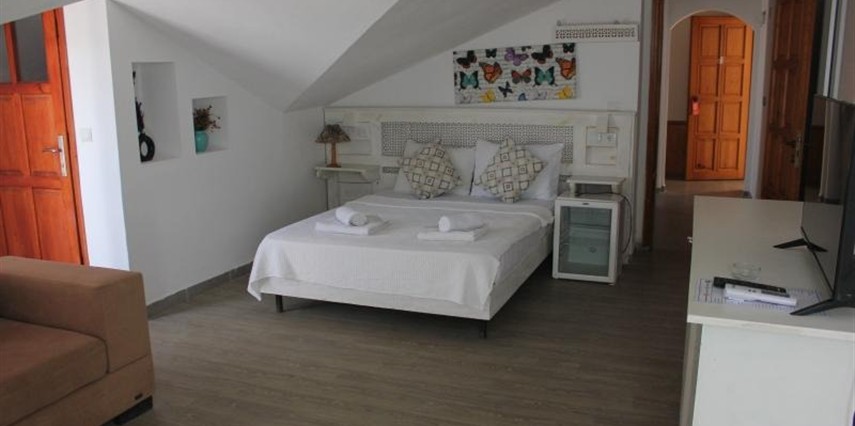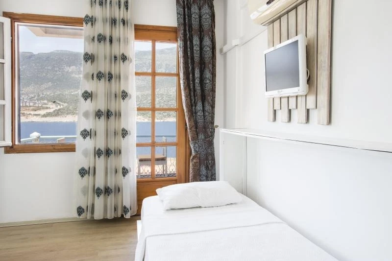 Tesiste özel balkonu bulunan 27 oda mevcut. Odalarda; klima, minibar, banyo, duş, WC, televizyon, uydu TV, saç kurutma makinesi ve kablosuz internet gibi olanaklar bulunuyor. Odaların bazıları panoramik Akdeniz manzarasına açılıyor.