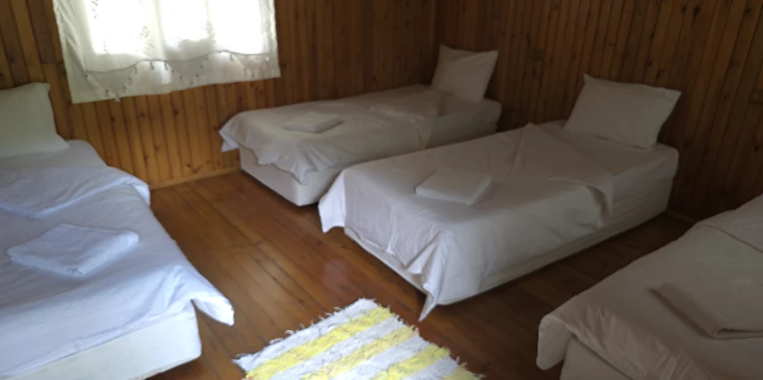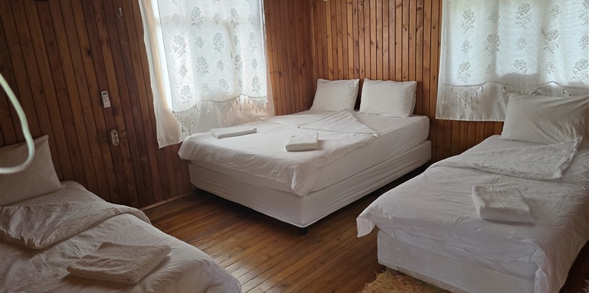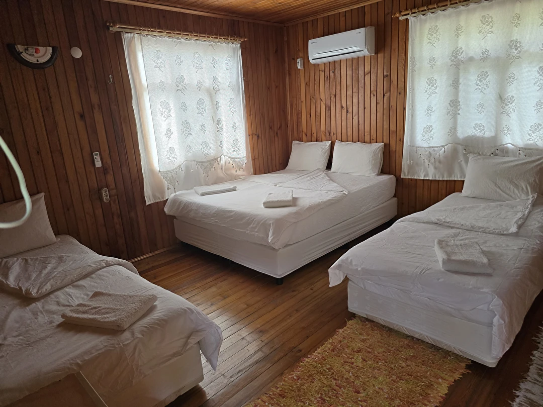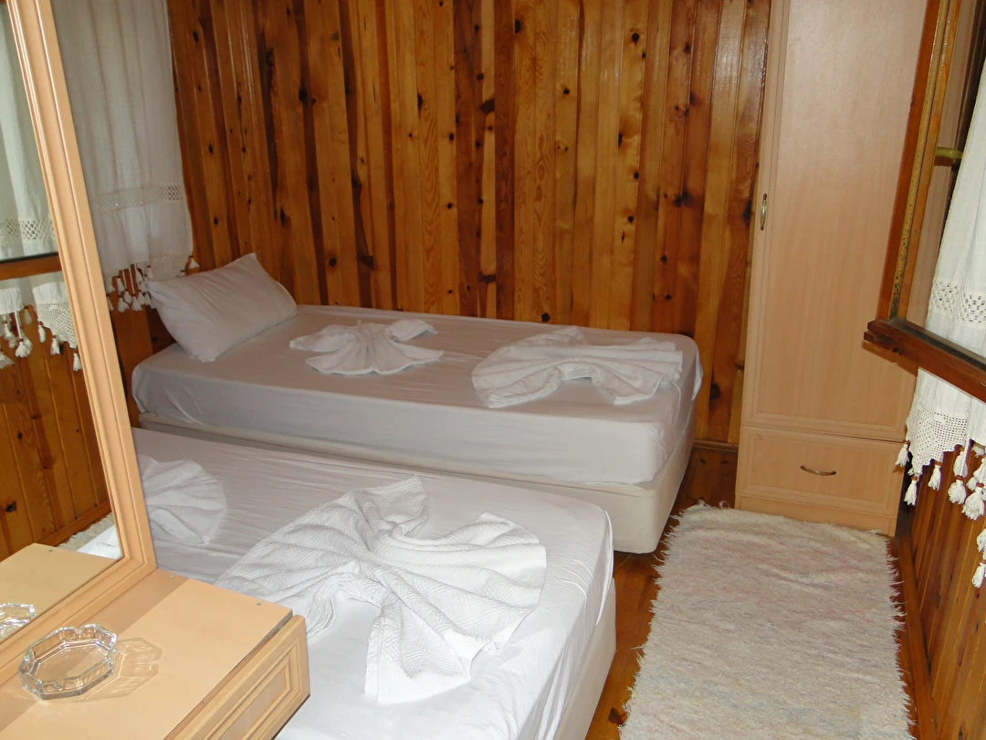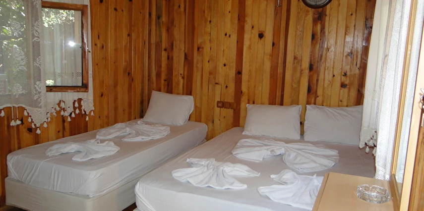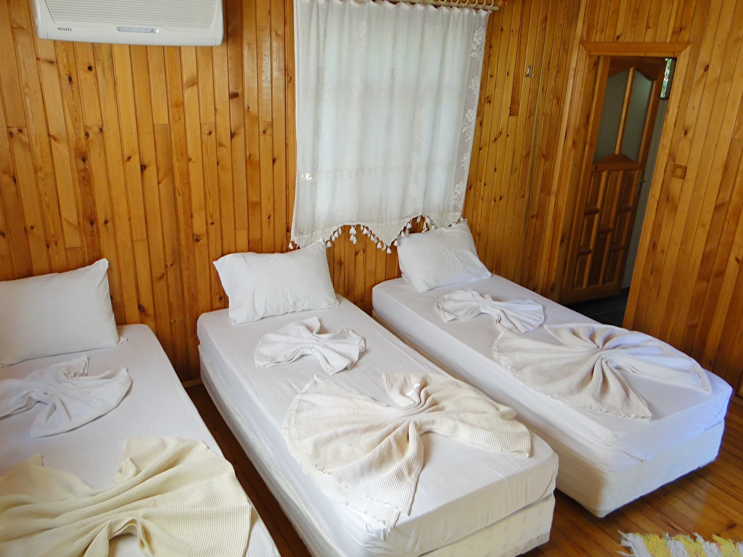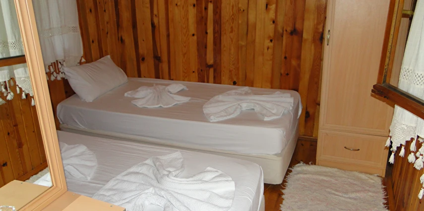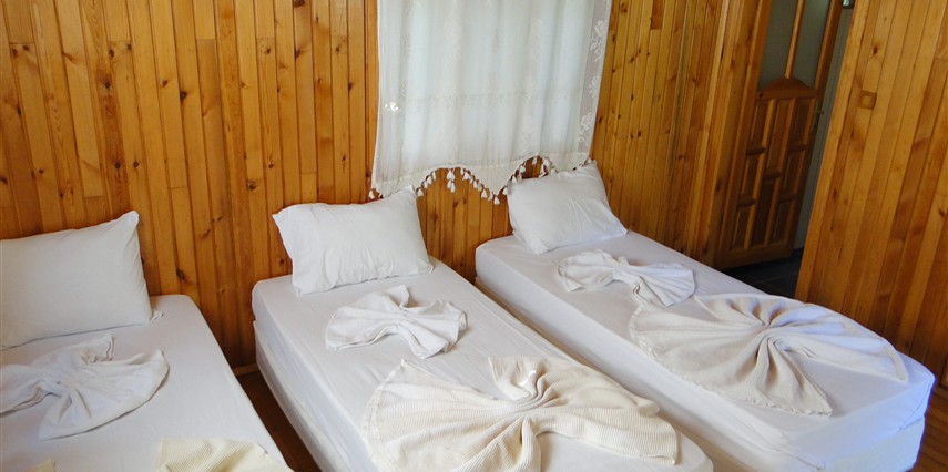 Odalarda Duş, WC, Klima ve her türlü konfor mevcuttur; 9 adet üç kişilik, 2 adet 4 kişilik, 17 adet iki kişilik olmak üzere toplam 28 odadır. Restoran bahçede ve çevresinde oturma grupları koyulmuştur. Sıcak yaz gecelerinde, ay ışığında sohbet etmek isteyen misafirlerimiz için Restoranın önünde uygun yerler bulunduğundan evlerin çevresinde gürültü oluşumu önlenmiştir.