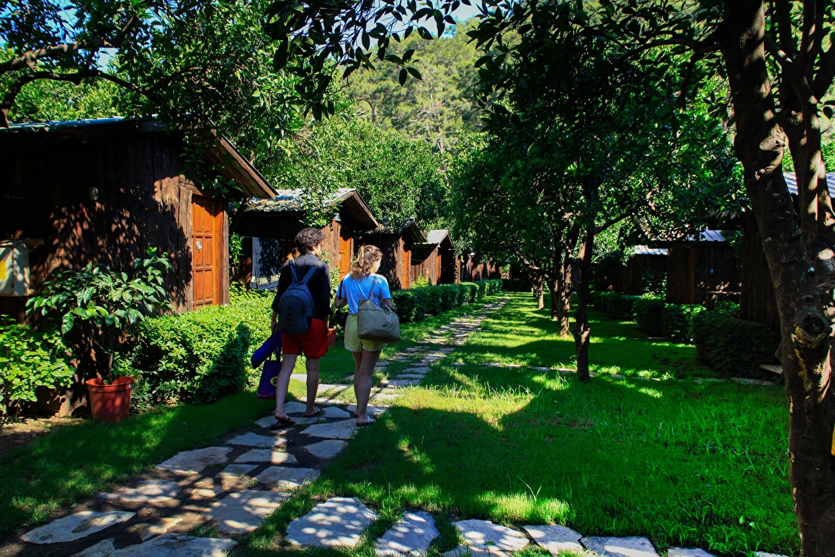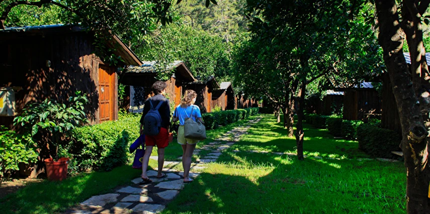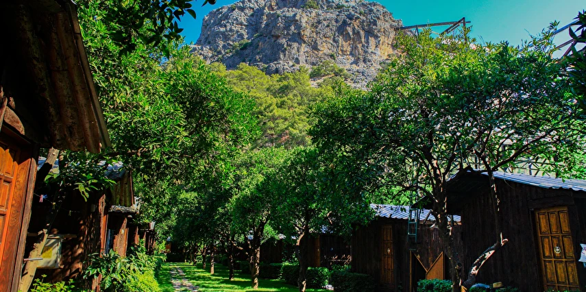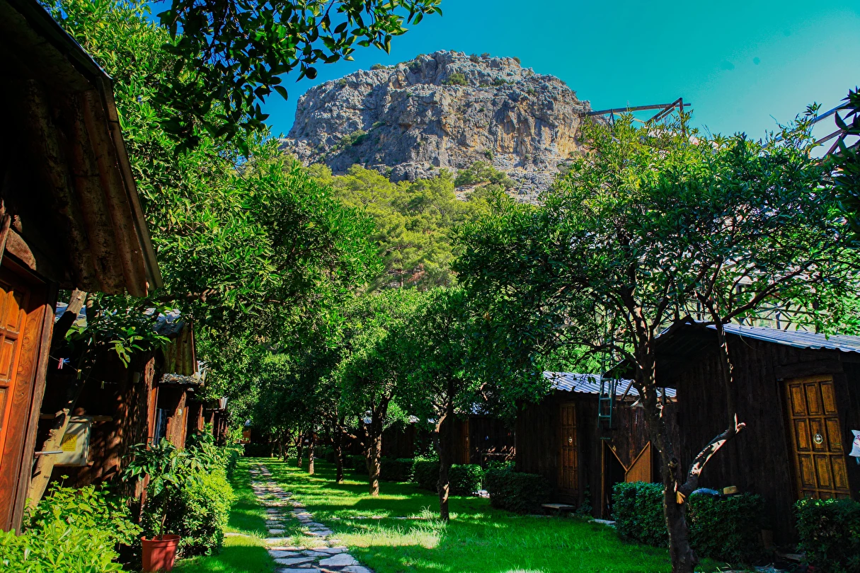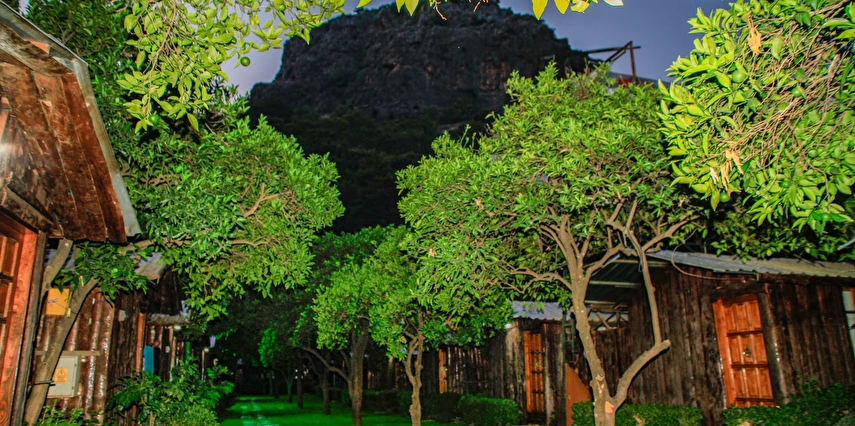 Korsan Pansiyon doğal güzellikleriyle Dünyada ün yapmış ve devletçe koruma altına alınmış olan Olympos’un tam ortasındadır. Bu bölgede büyük oteller yapmak kesinlikle yasaktır. Böylelikle siz değerli misafirlerimize doğa ile iç içe yaşama imkanı sunulmaktadır. Tesisimiz dağların arasında ki portakal bahçesi içerisinde küçük ağaç evler şeklinde, çok sade ve doğal biçimde yapılmıştır.