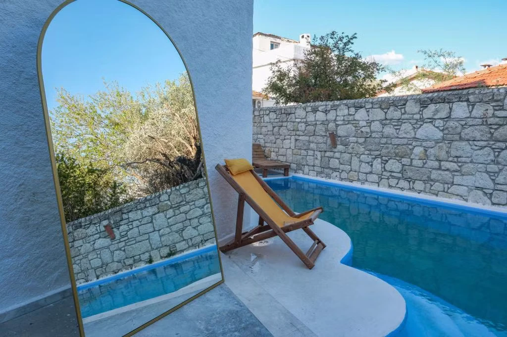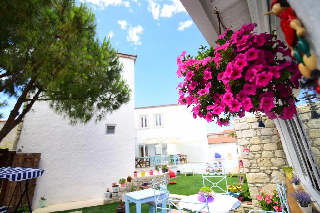 Alaçatı merkezinde, eğlence yerlerine yürüyüş mesafesinde, otopark sorunu olmayan, aileniz ile birlikte huzur ve güven içinde kalacağınız ; güler yüzlü ve samimi personeli ile misafirlerine benzersiz bir tatilin kapılarını aralıyor.