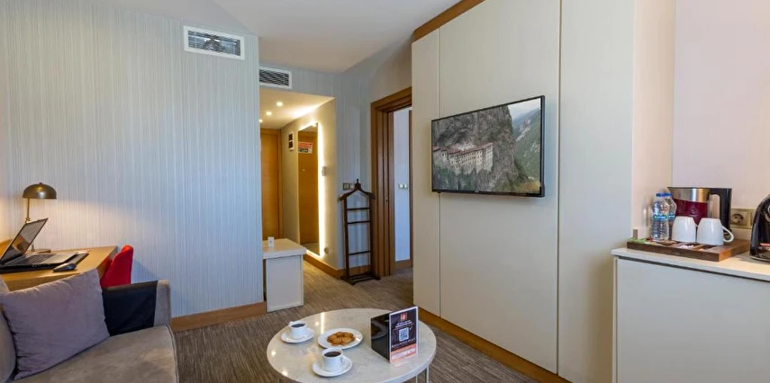Daha Fazla GösterOtelimiz, Trabzon’un mavi ile yeşilin en güzel şekilde buluştuğu turistik bölgesi Kaşüstü semtinde yer almaktadır. Trabzon Havalimanı’na sadece 10 dakika, şehir merkezine ise 15 dakika mesafede bulunan otelimiz, misafirlerine ulaşım açısından büyük kolaylık sunmaktadır.