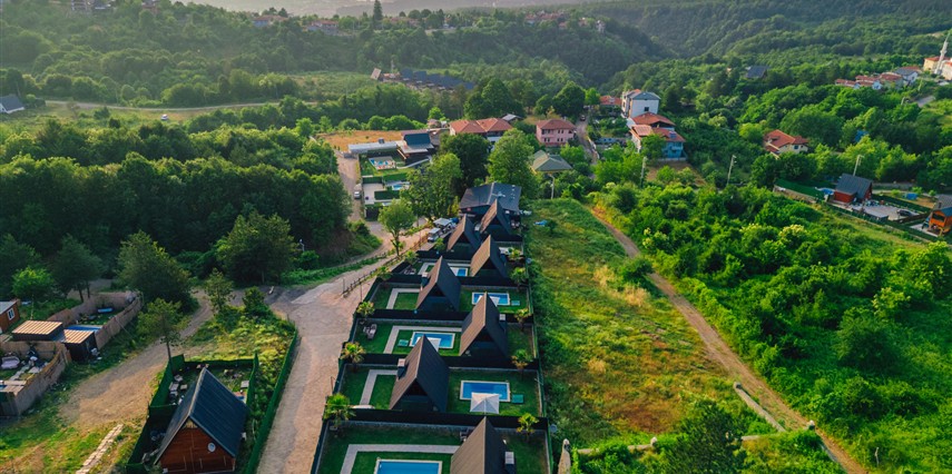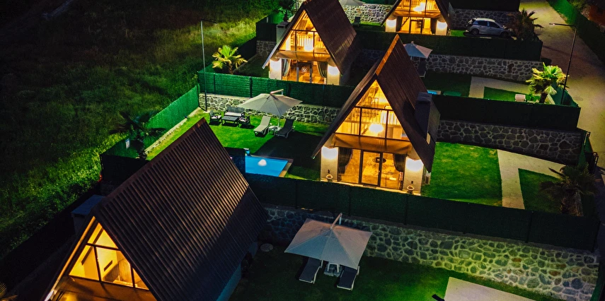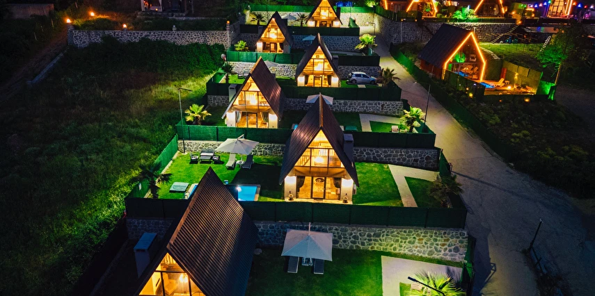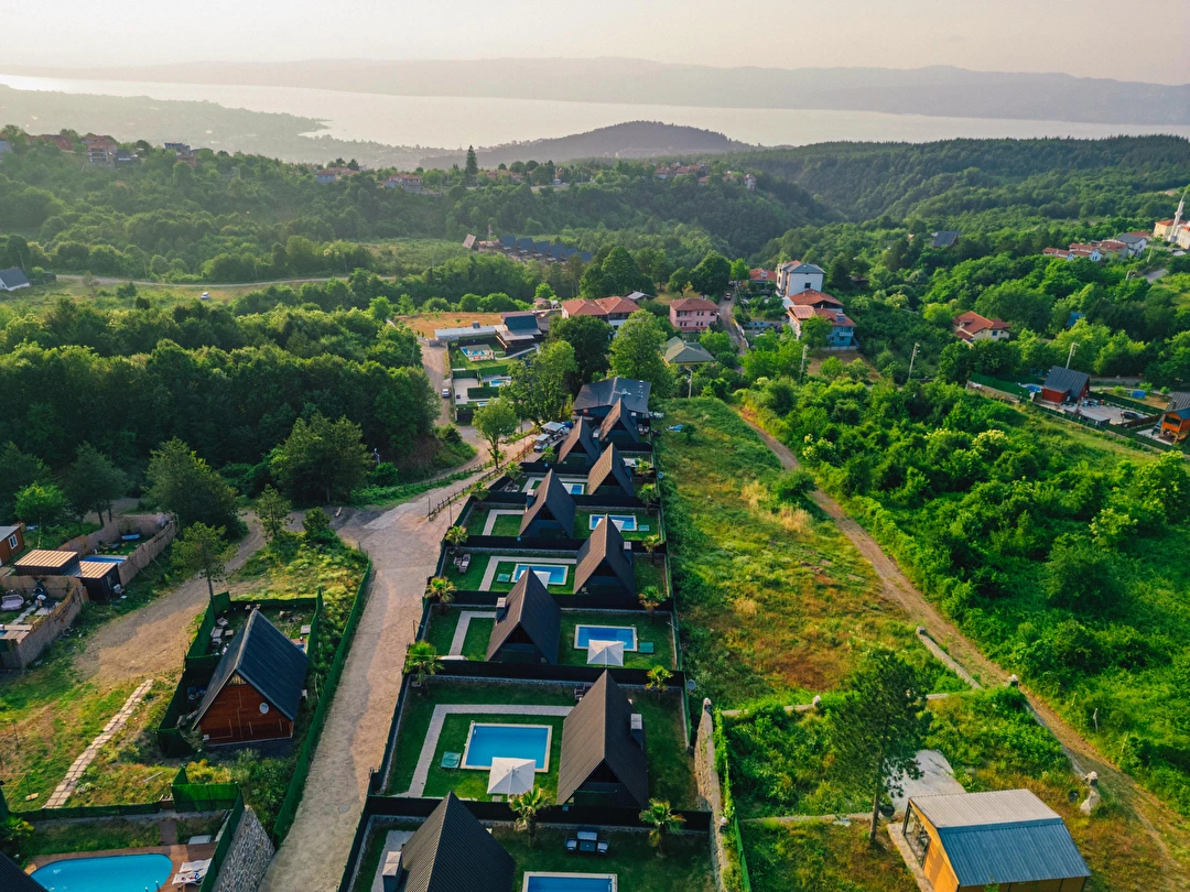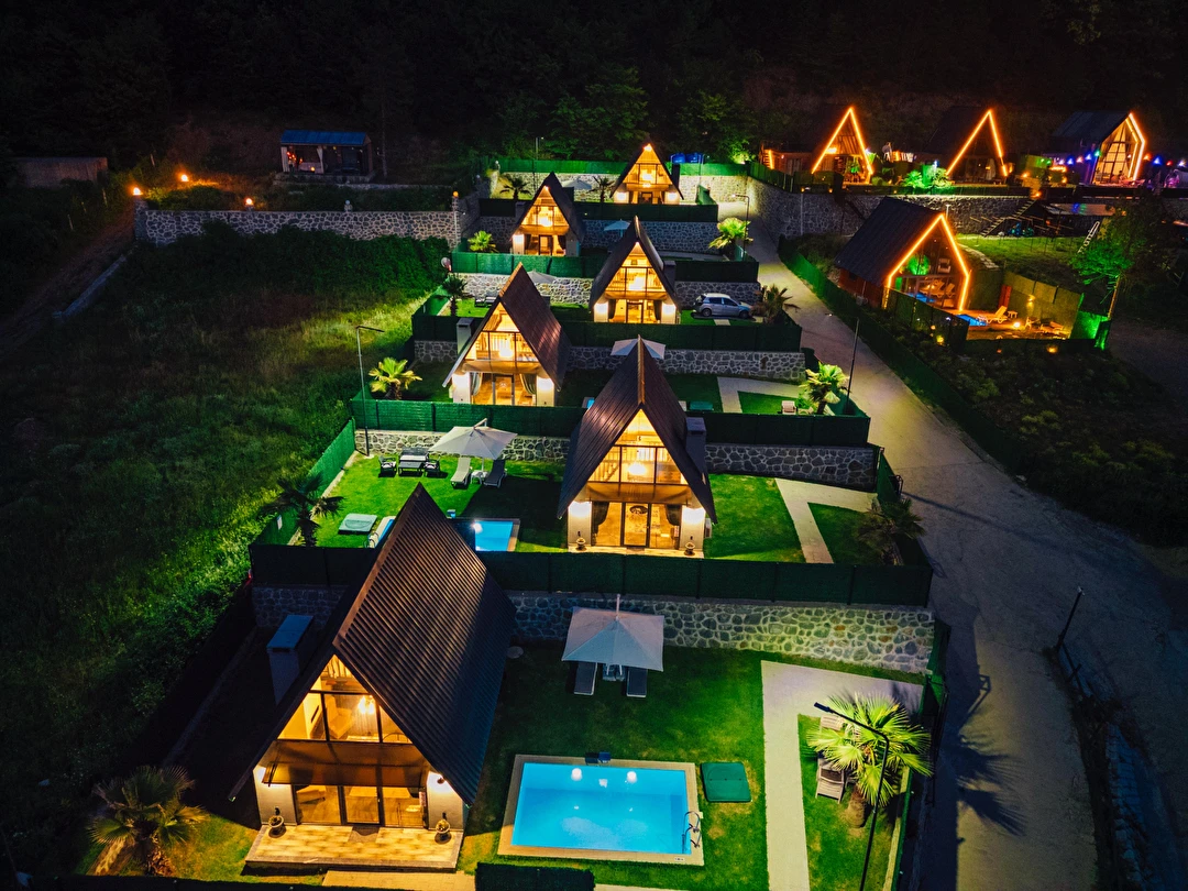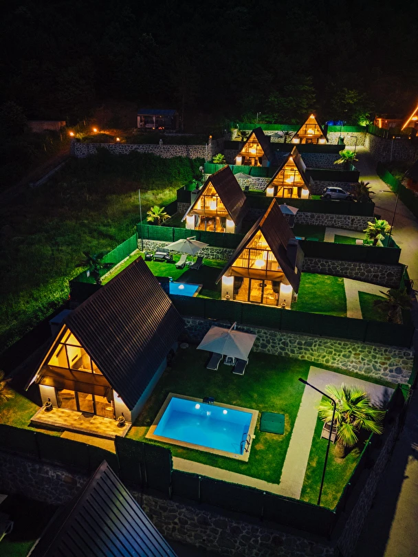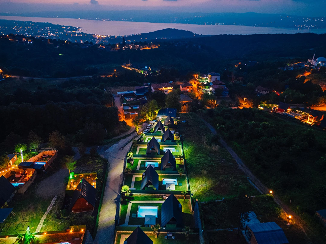 Daha Fazla GösterSapanca Kuka Bungalov Sapanca'nın Hacımercan köyünde bulunmaktadır. Toplam 8 adet bungalov bulunmaktadır. Konforlu ve kaliteli ev dekorasyon eşyalarıyla zevkle döşenmiştir. Misafirlerin eğlenceli vakit geçirmesi için tüm detaylar en ince ayrıntılarına kadar düşünülerek, konuklarının hizmetine sunulmuştur. Hayalinizdeki tatili yaşamanız için özel olarak tasarlanan bu bungalovda konaklarken her şeyin hayal ettiğiniz gibi olduğunu göreceksiniz. Doğanın dinlendirici etkisiyle huzur bulurken ailece keyifli zaman geçireceksiniz.